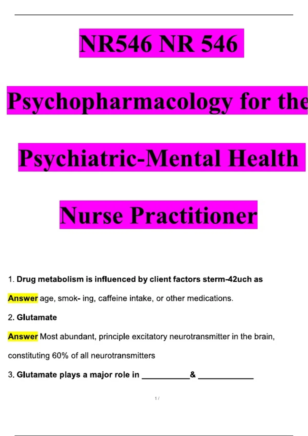 NR 546 Psychopharmacology for the Psychiatric Mental Health Nurse Practitioner | Complete Study Guide PDF with Verified Content | Updated 2025–2026