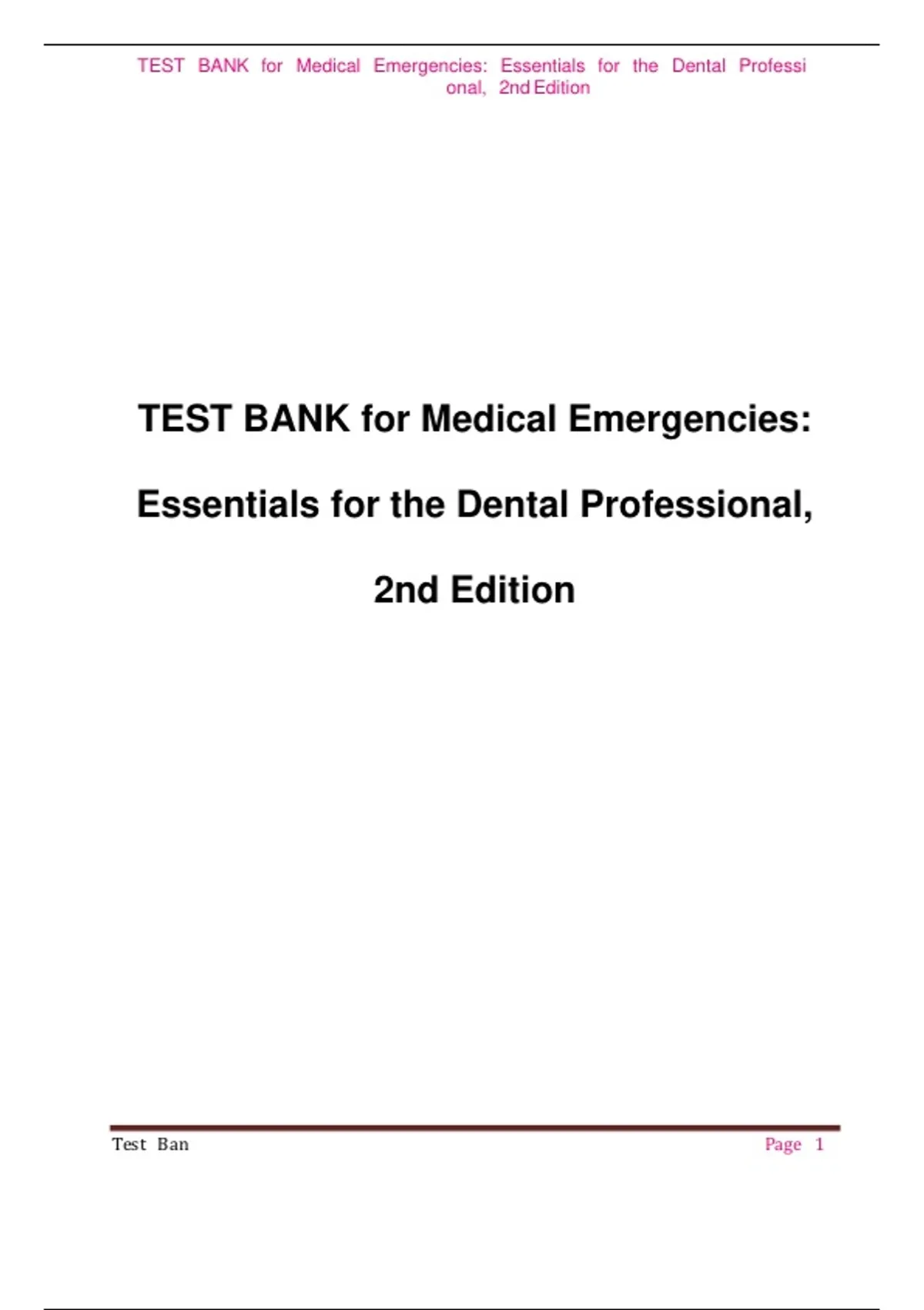 TEST BANK for Medical Emergencies: Essentials for the Dental Professional, 2nd EditionTEST BANK for Medical Emergencies: Essentials for the Dental Professional, 2nd Edition