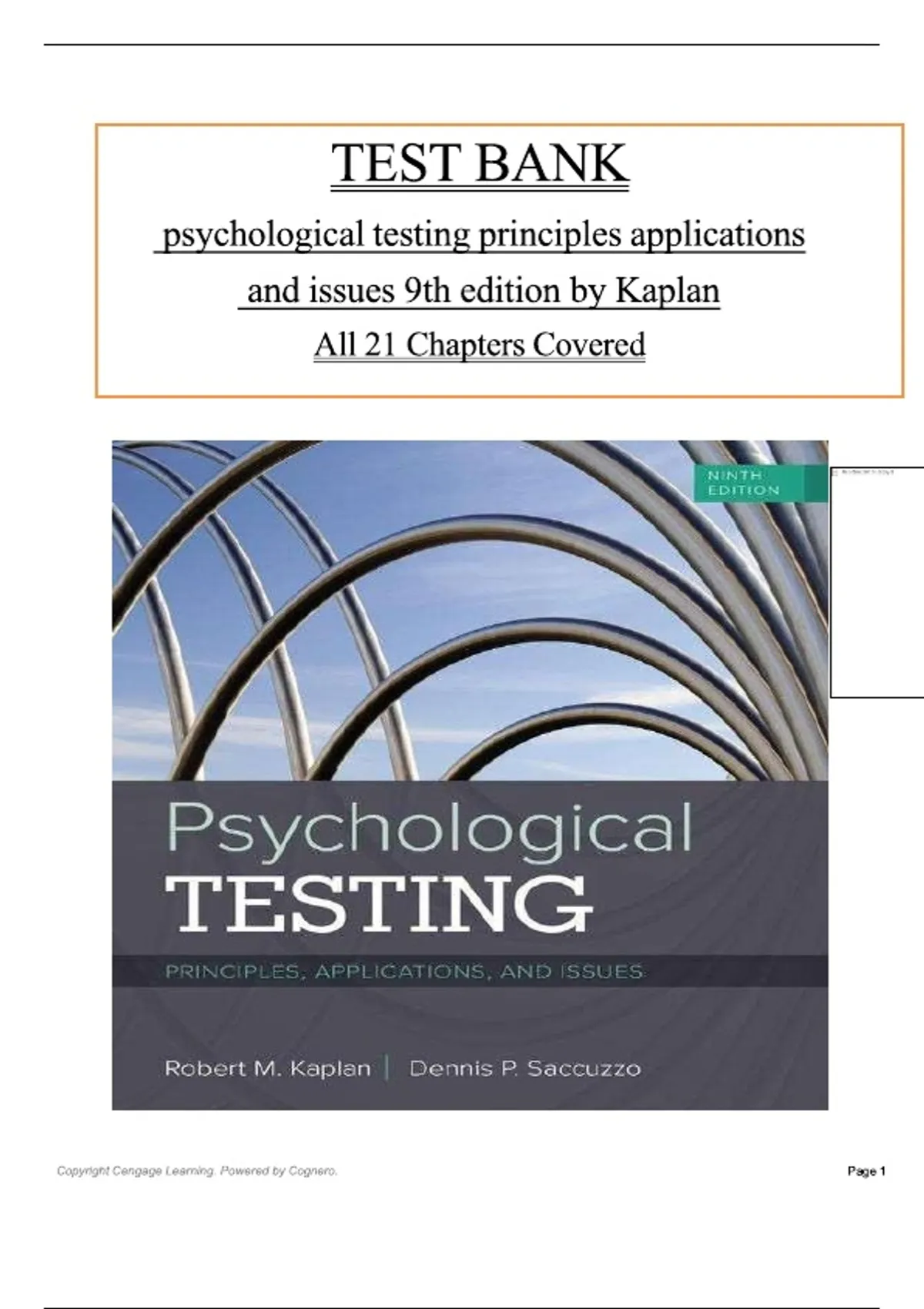 Test Bank - Psychological Testing: Principles, Applications, and Issues, 9th edition by Kaplan & Saccuzzo, All 21 Chapters Covered, Verified Latest Edition