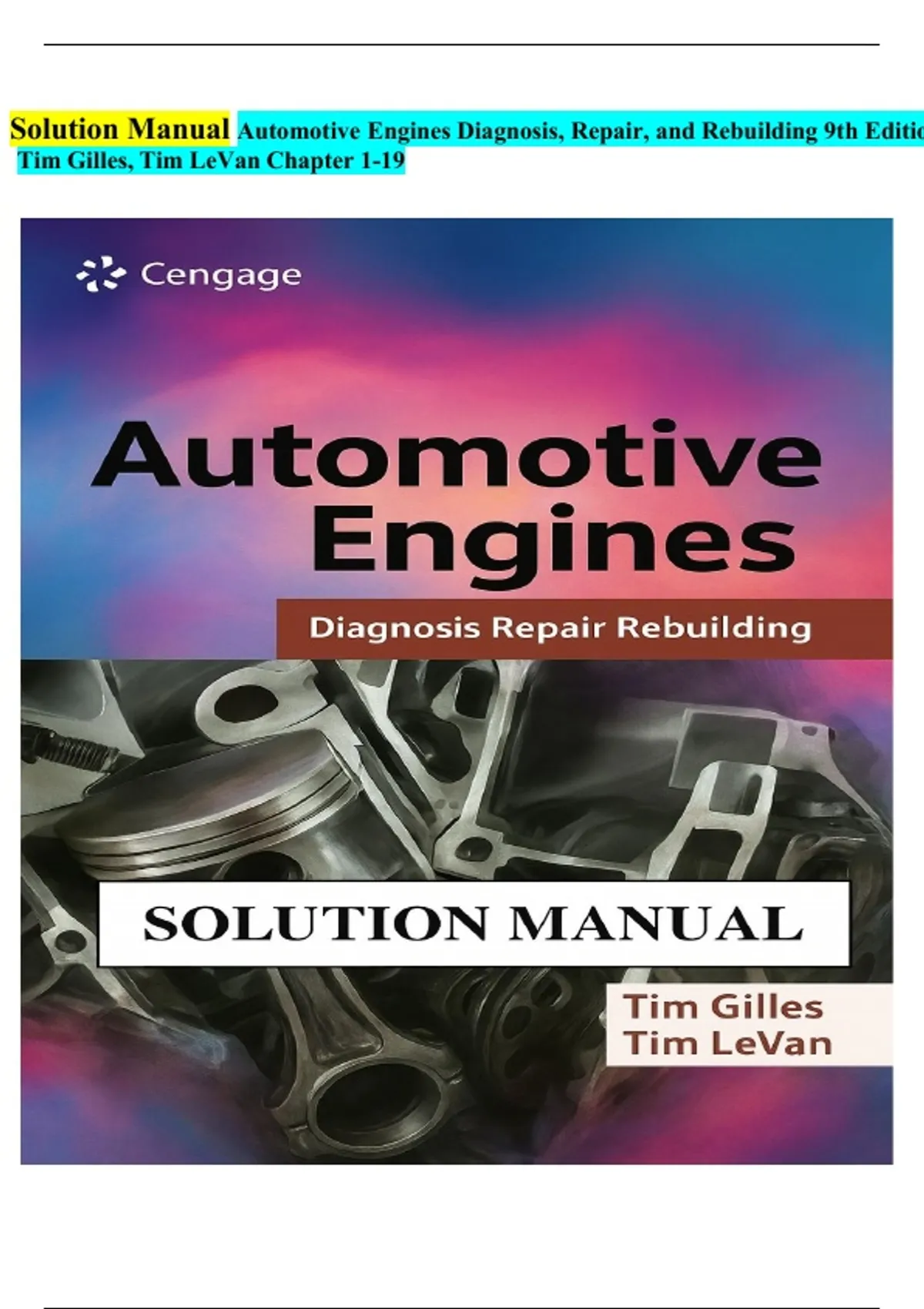 Solution Manual Automotive Engines Diagnosis, Repair, and Rebuilding/9780357766248/ 9th Edition Tim Gilles, Tim LeVan Chapter 1-19 Best Version Review, 100% Complete & Correct