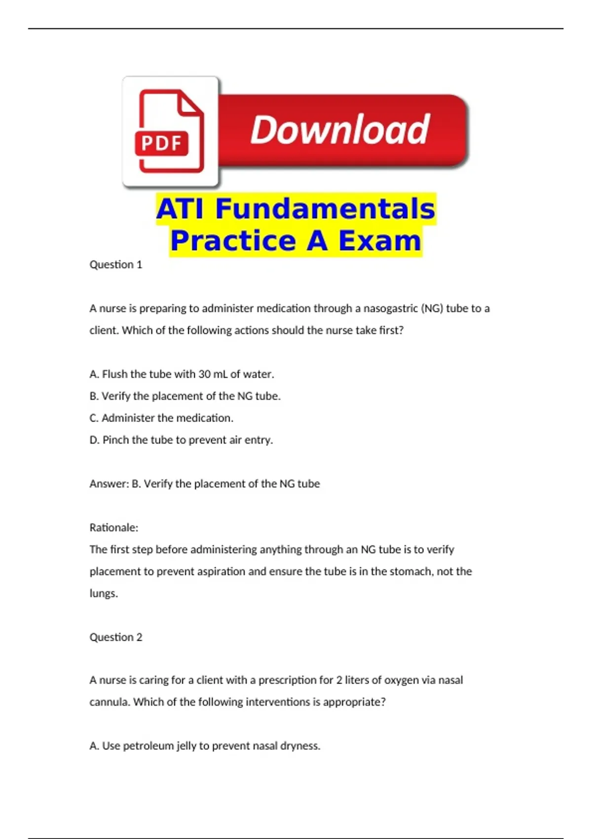 ATI Fundamentals Practice A Exam – Full Question & Answer Set With Rationales (Latest LA Version)