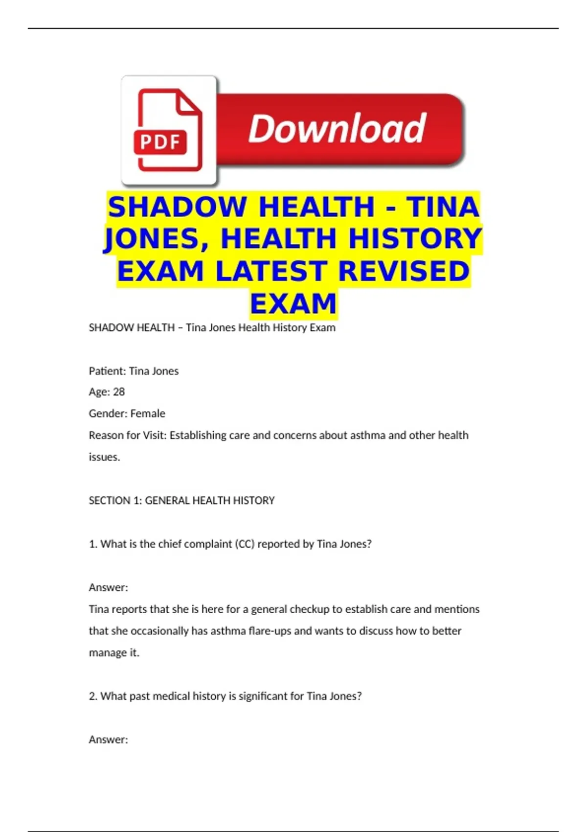 SHADOW HEALTH – Tina Jones Health History Exam
