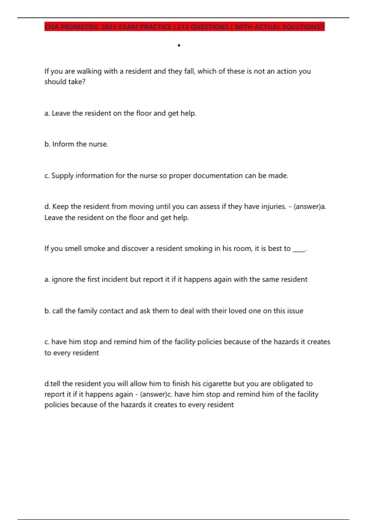 ,CNA PROMETRIC 2025 EXAM PRACTICE | 212 QUESTIONS | WITH ACTUAL SOLUTIONS!!