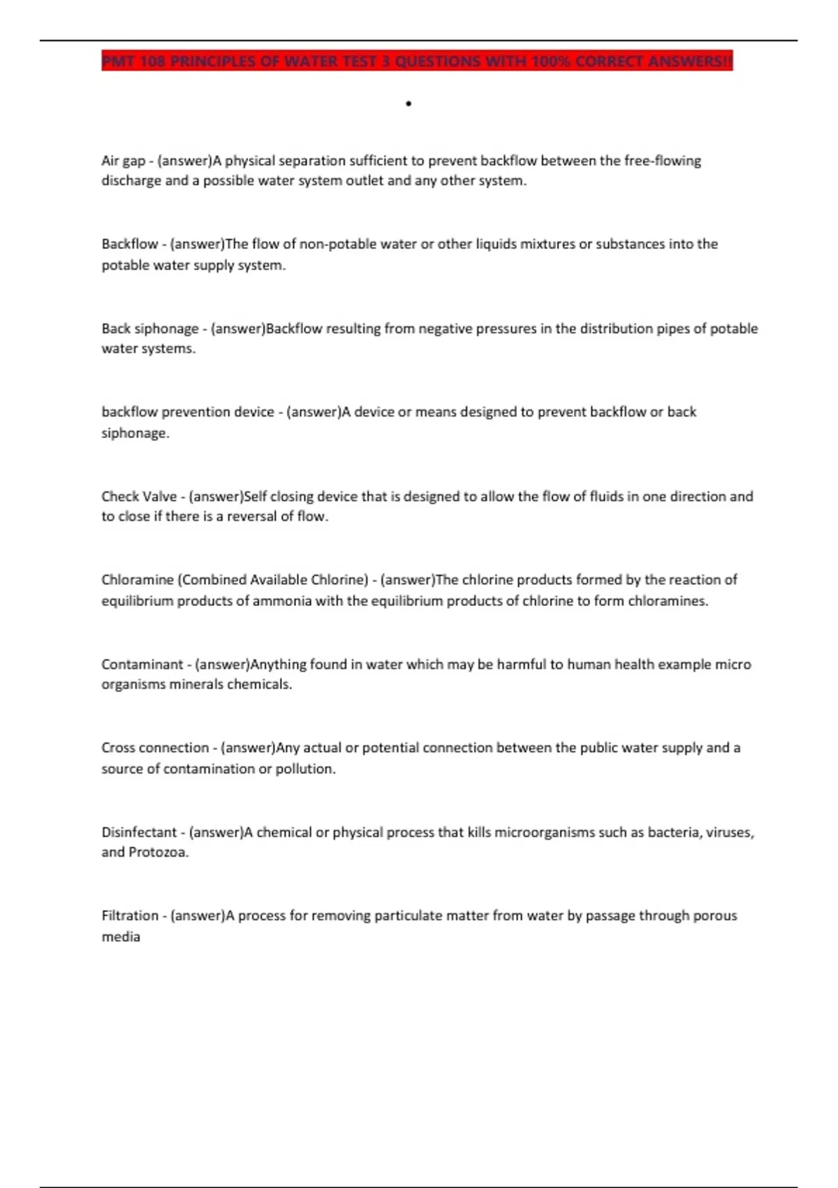 , PMT 108 PRINCIPLES OF WATER TEST 3 QUESTIONS WITH 100% CORRECT ANSWERS!!