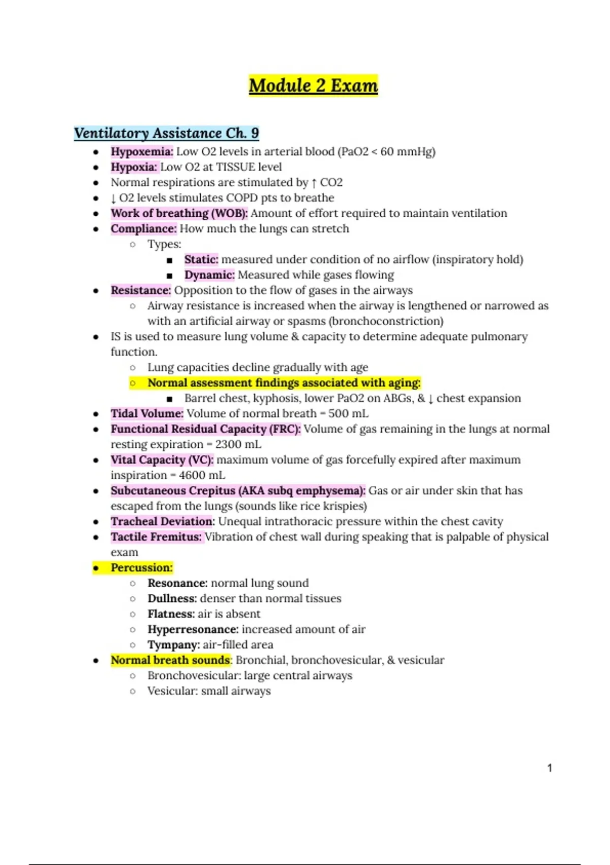 ● Vital Capacity (VC): maximum volume of gas forcefully expired after maximum