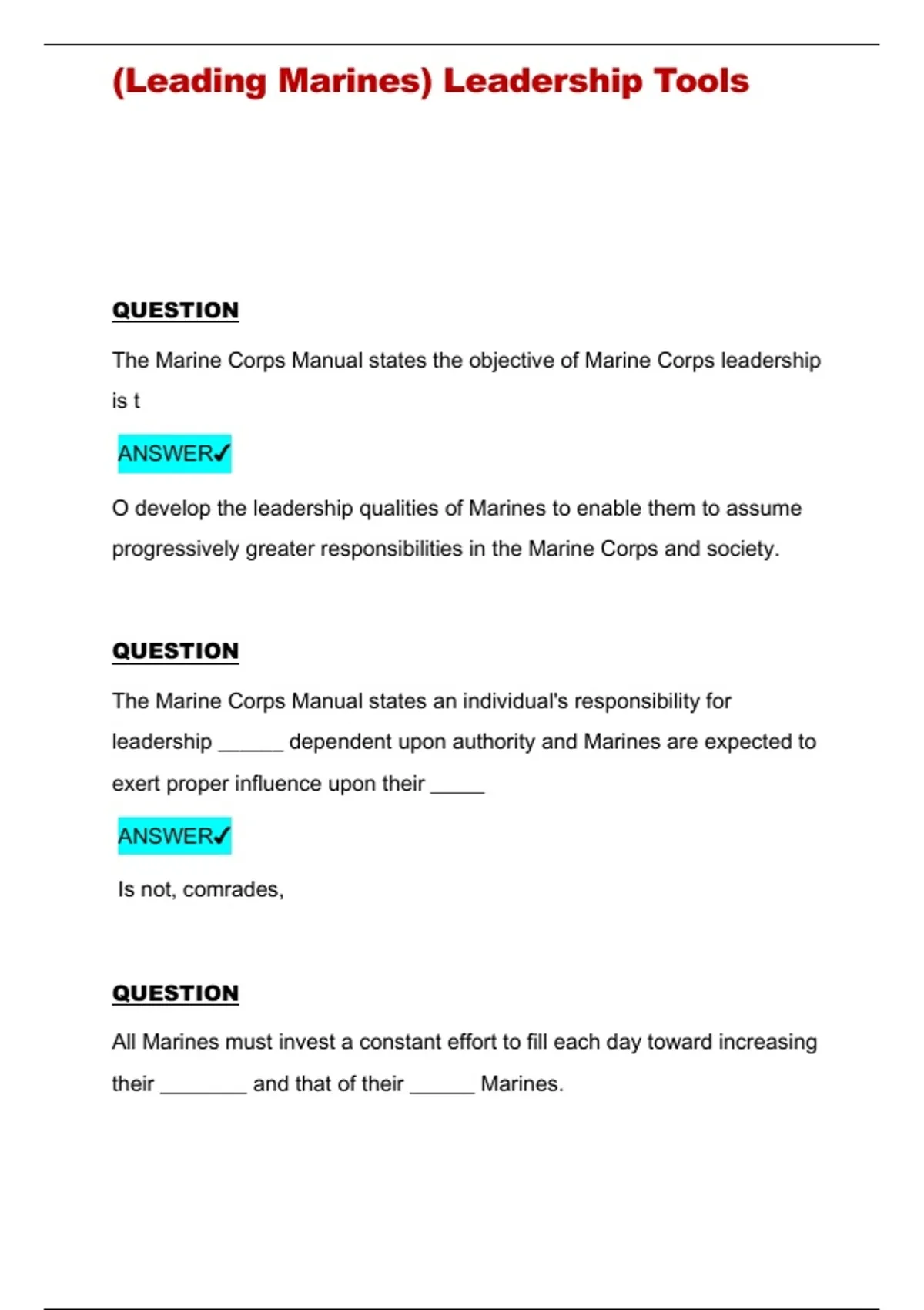 , (Leading Marines) Leadership Tools