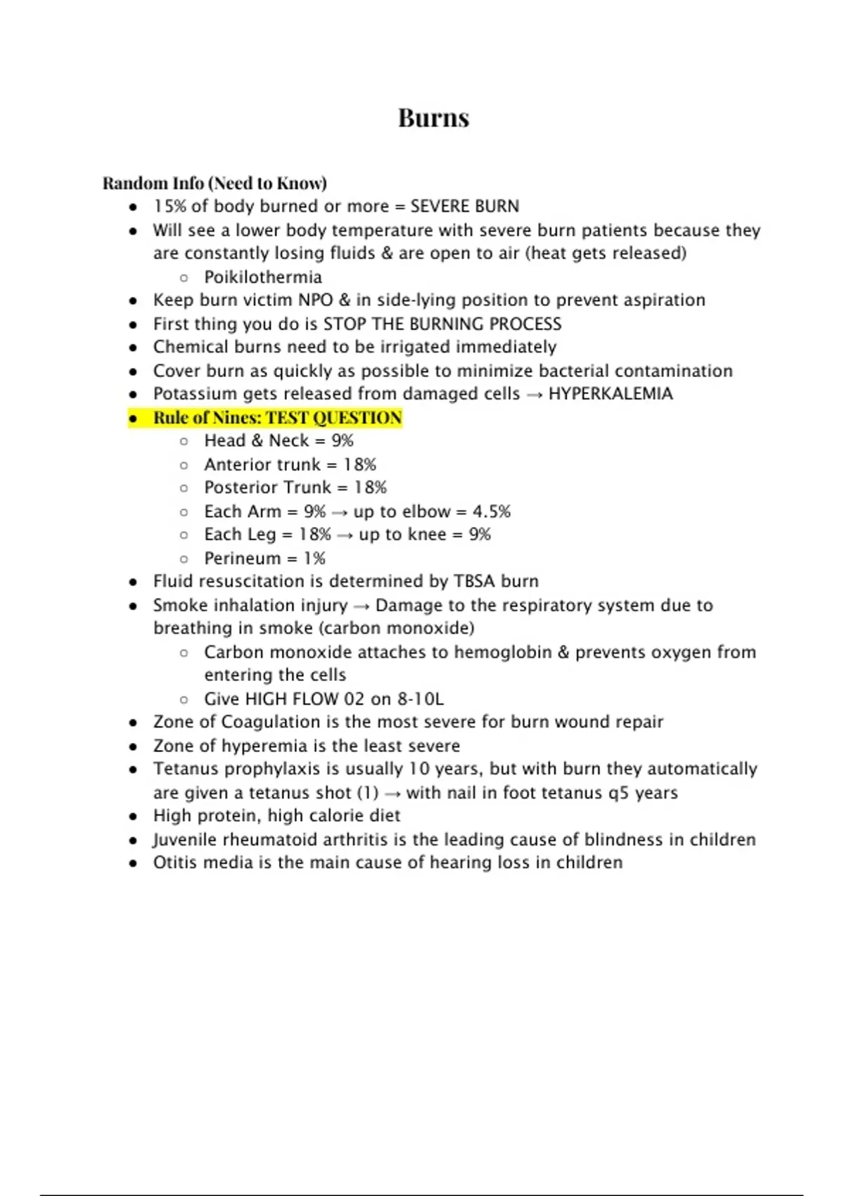 ● Rule of Nines: TEST QUESTION