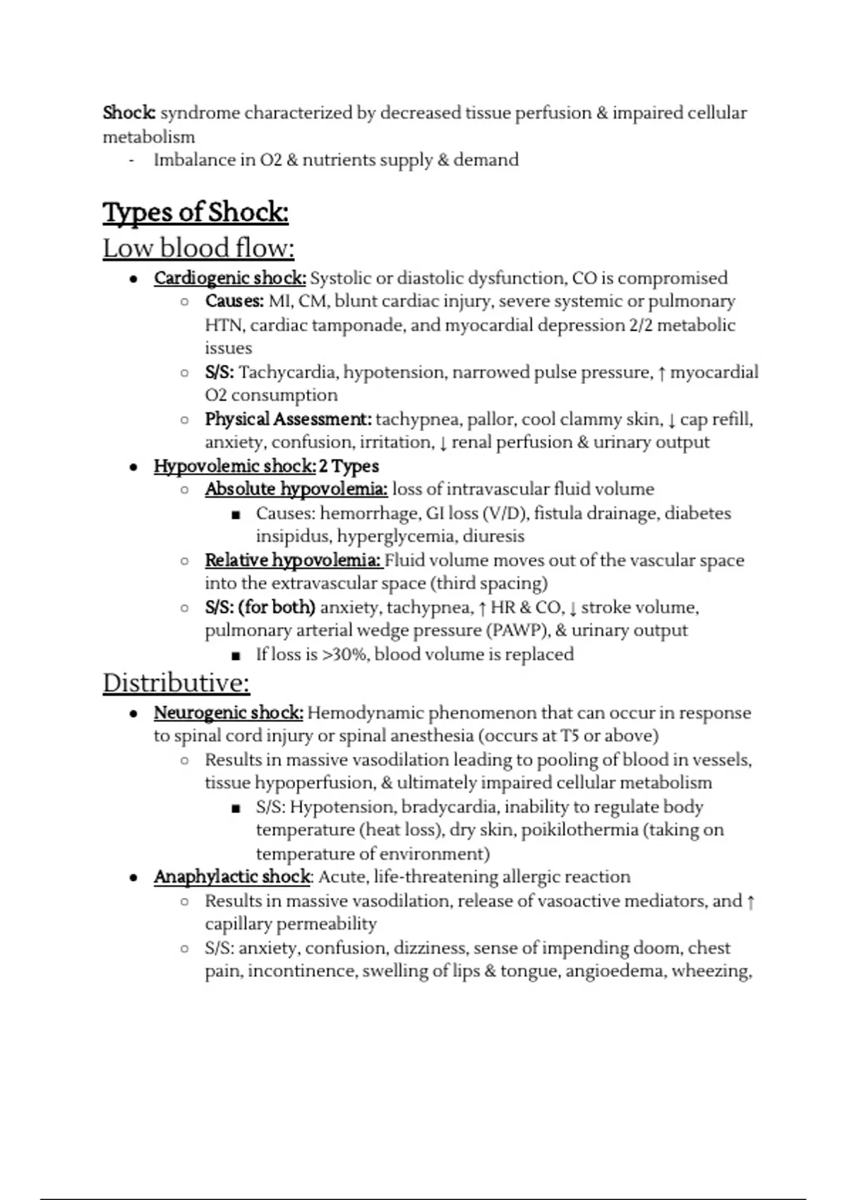 Shock: syndrome characterized by decreased tissue perfusion & impaired cellular