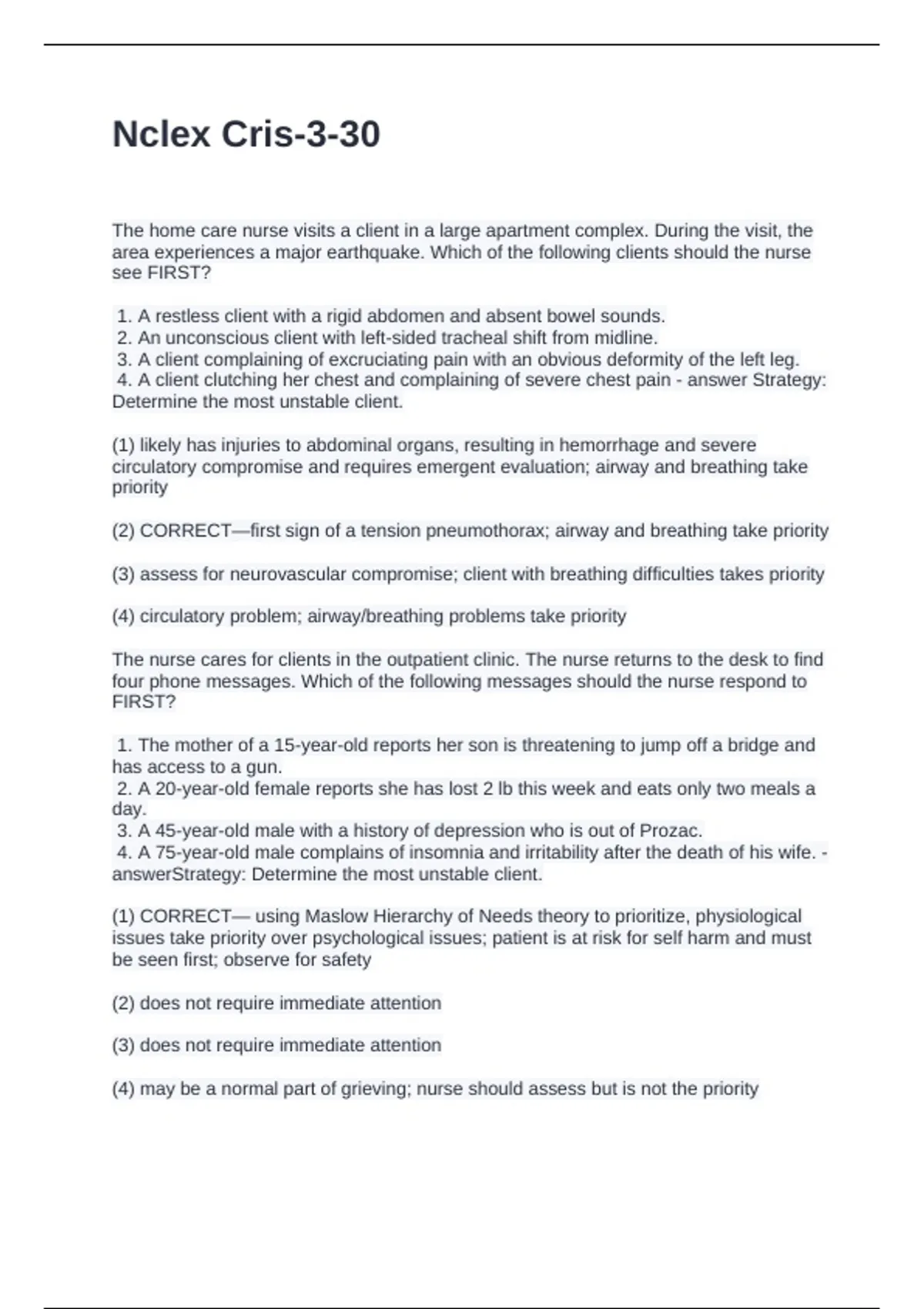 Nclex Cris-3-30 Questions and Answers