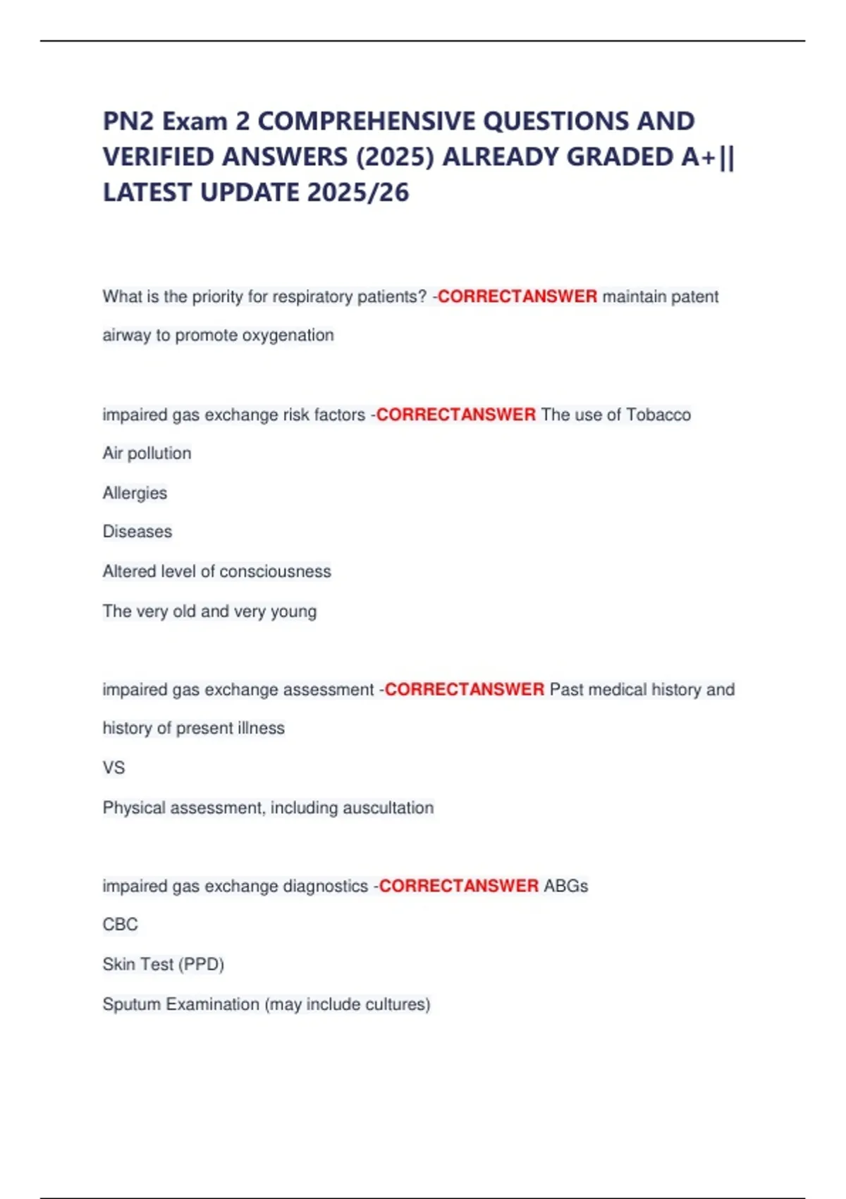PN2 Exam 2 COMPREHENSIVE QUESTIONS AND