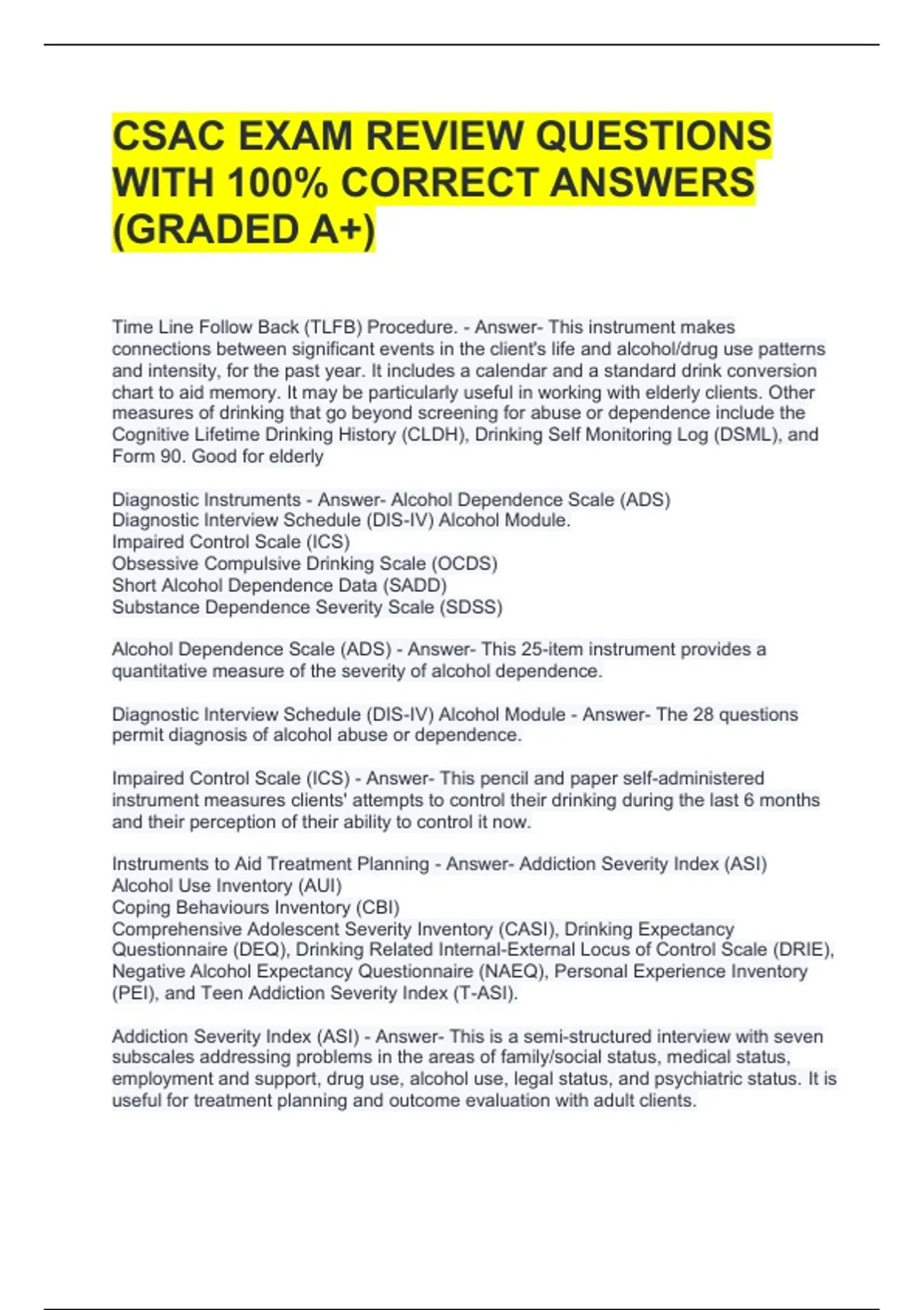 CSAC EXAM REVIEW QUESTIONS WITH 100% CORRECT ANSWERS (GRADED A+)