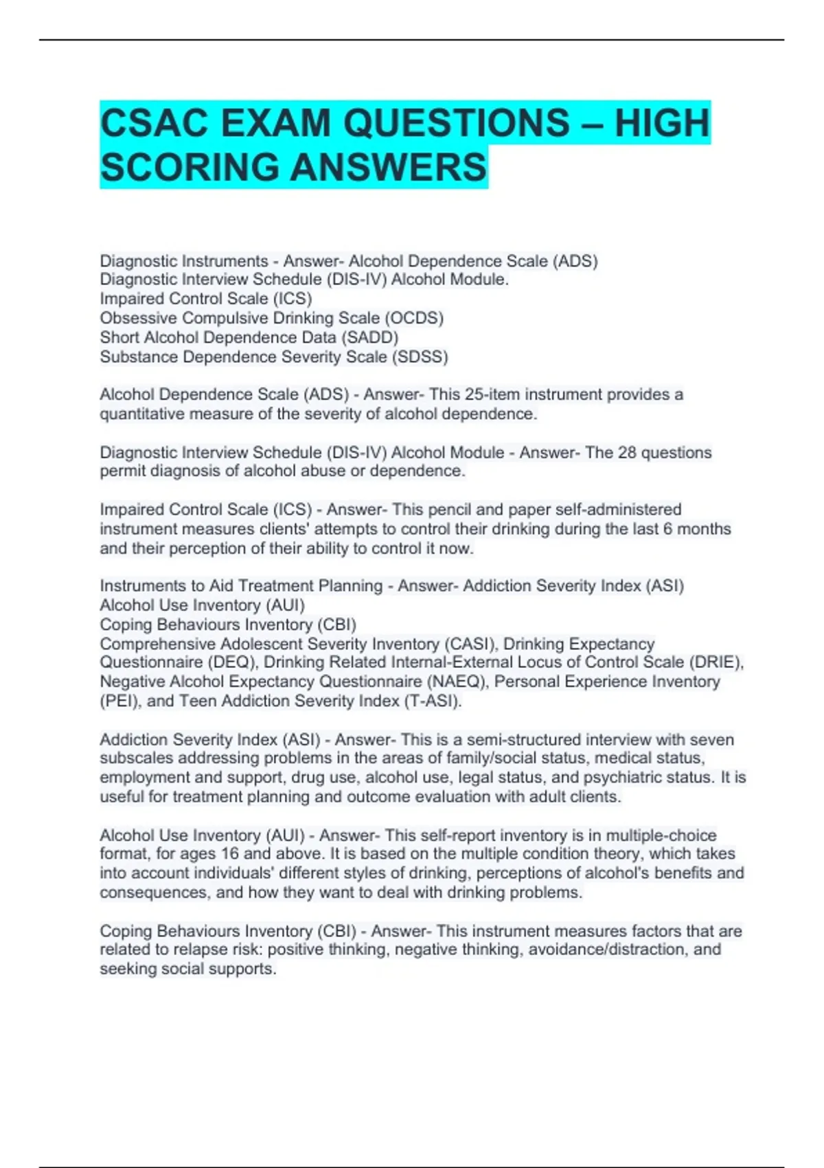 CSAC EXAM QUESTIONS – HIGH SCORING ANSWERS