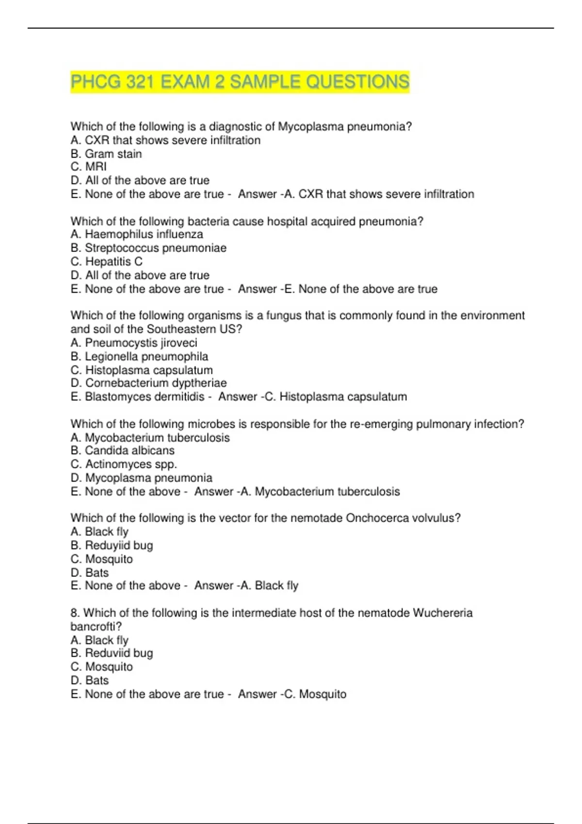 PHCG 321 EXAM 2 SAMPLE QUESTIONS