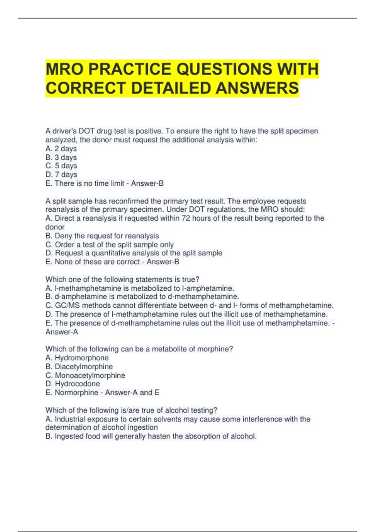 MRO PRACTICE QUESTIONS WITH CORRECT DETAILED ANSWERS