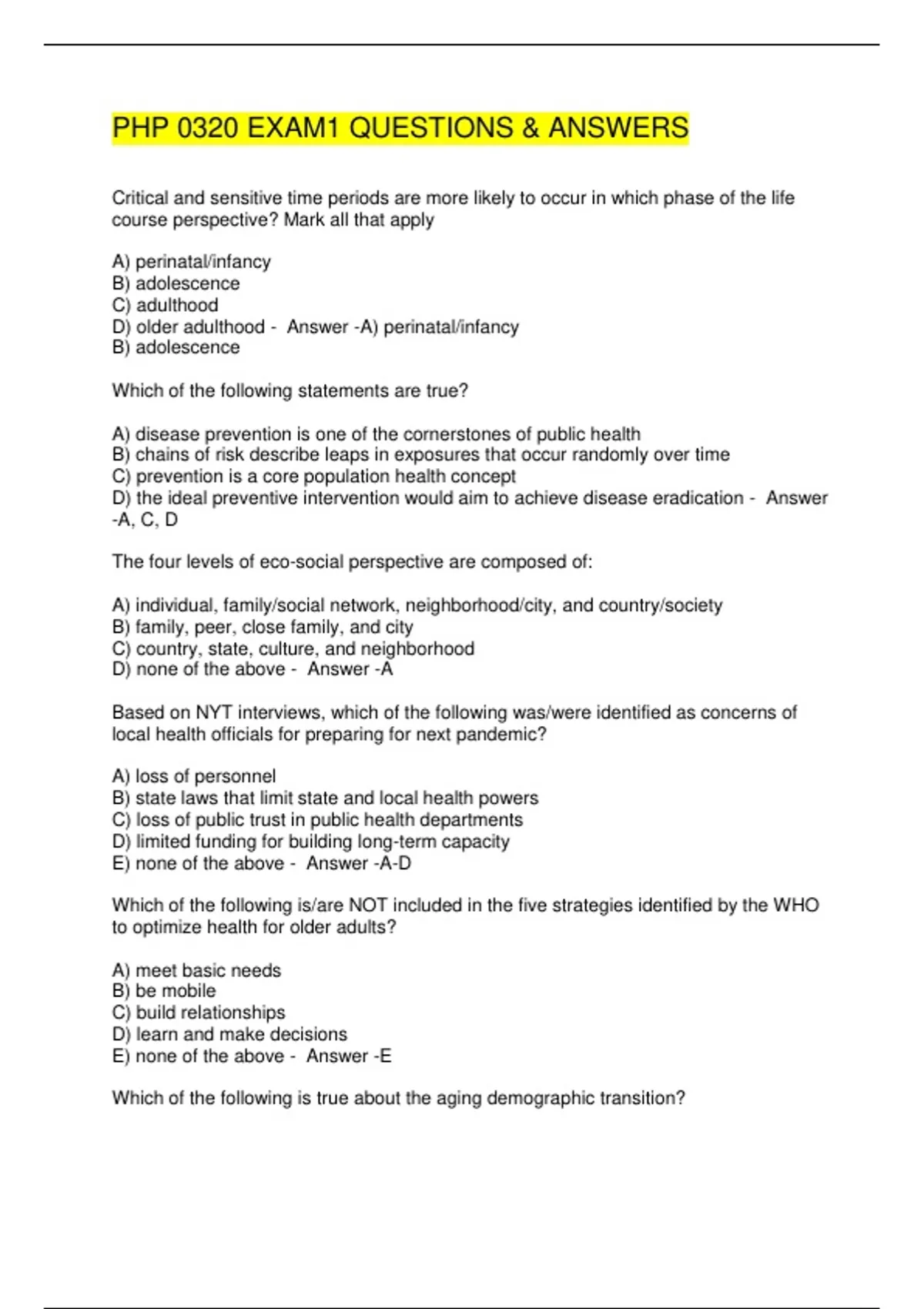PHP 0320 EXAM1 QUESTIONS & ANSWERS