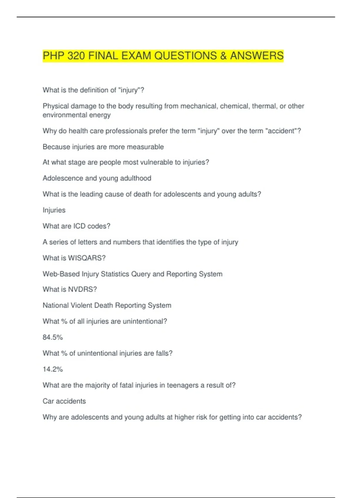 PHP 320 FINAL EXAM QUESTIONS & ANSWERS