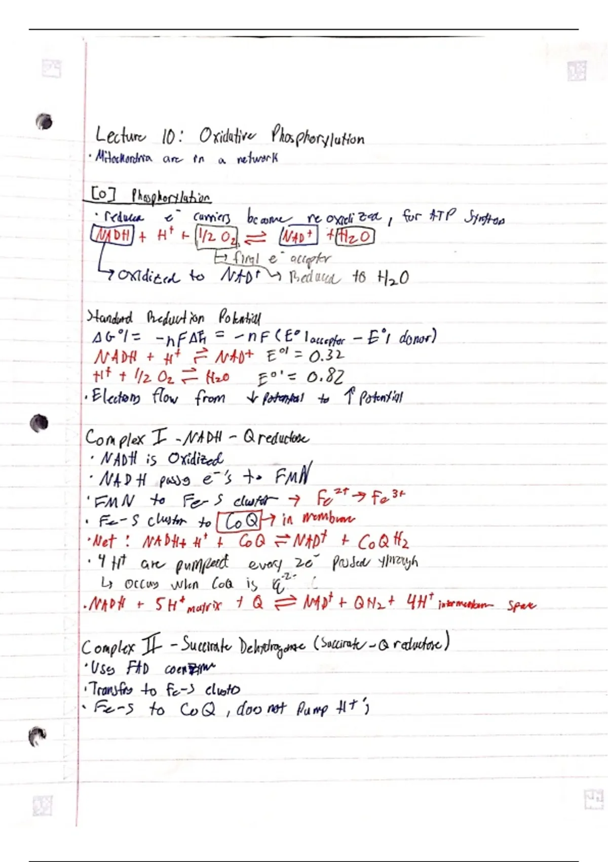 Biochemistry Notes – Lecture 10: Oxidative Phosphorylation