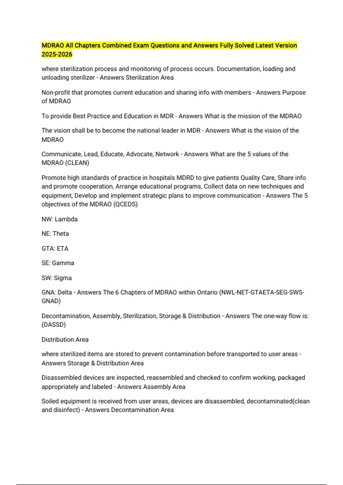 and disinfect) - Answers Decontamination Area