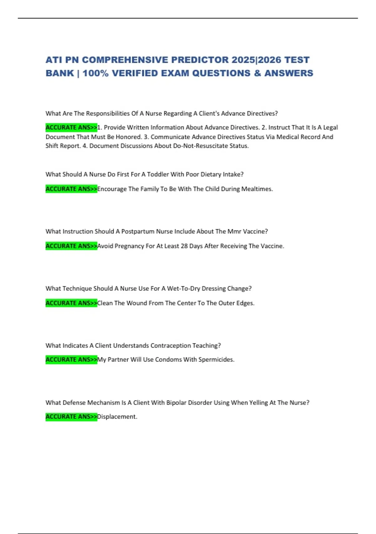 ACCURATE ANS>>1. Provide Written Information About Advance Directives. 2. Instruct That It Is A Legal