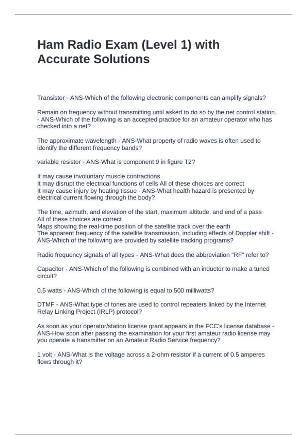 Ham Radio Exam (Level 1) with Accurate Solutions