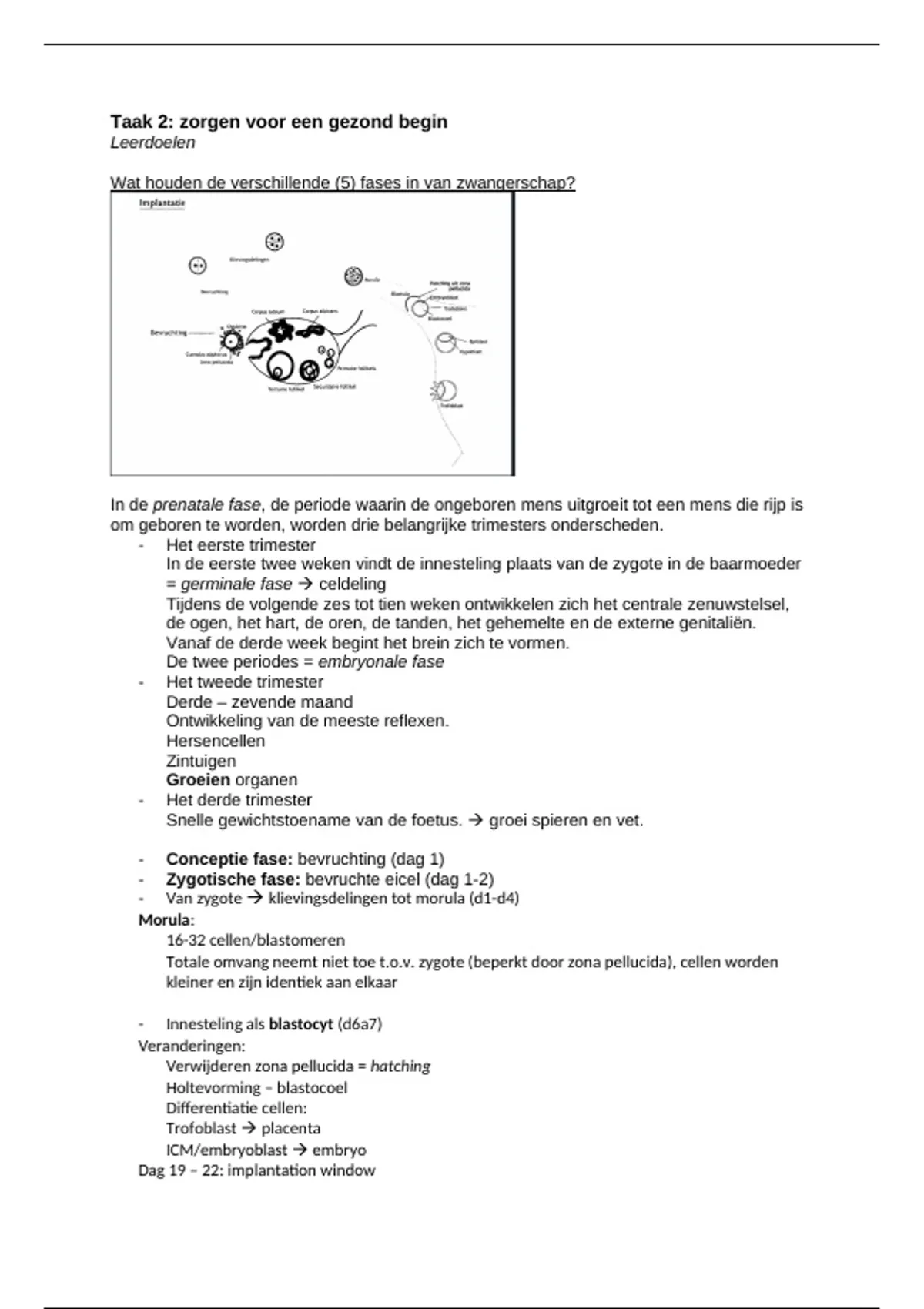 Samenvatting Taak 2 zorgen voor een gezond begin uitgewerkt