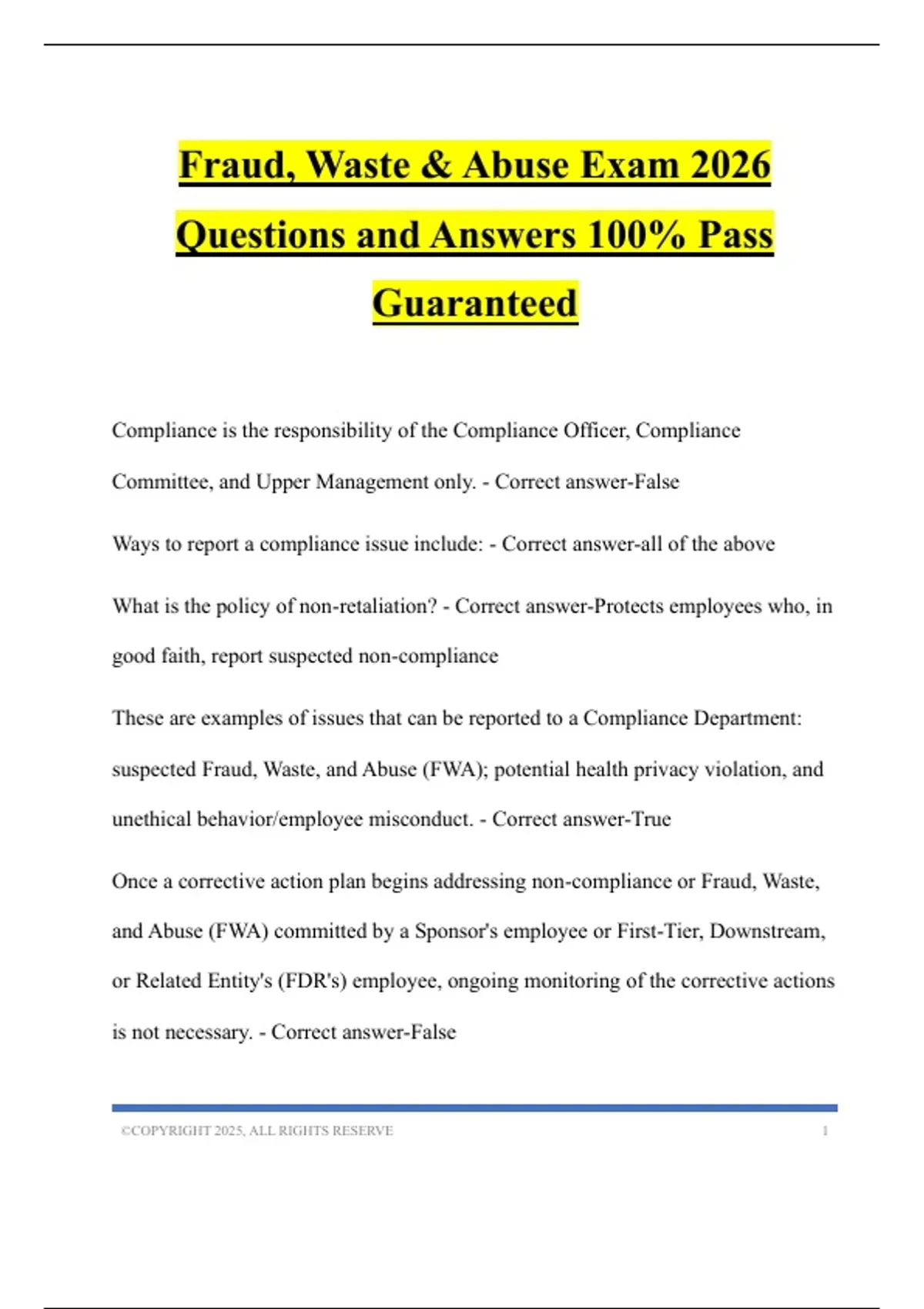 Once a corrective action plan begins addressing non-compliance or Fraud, Waste,
