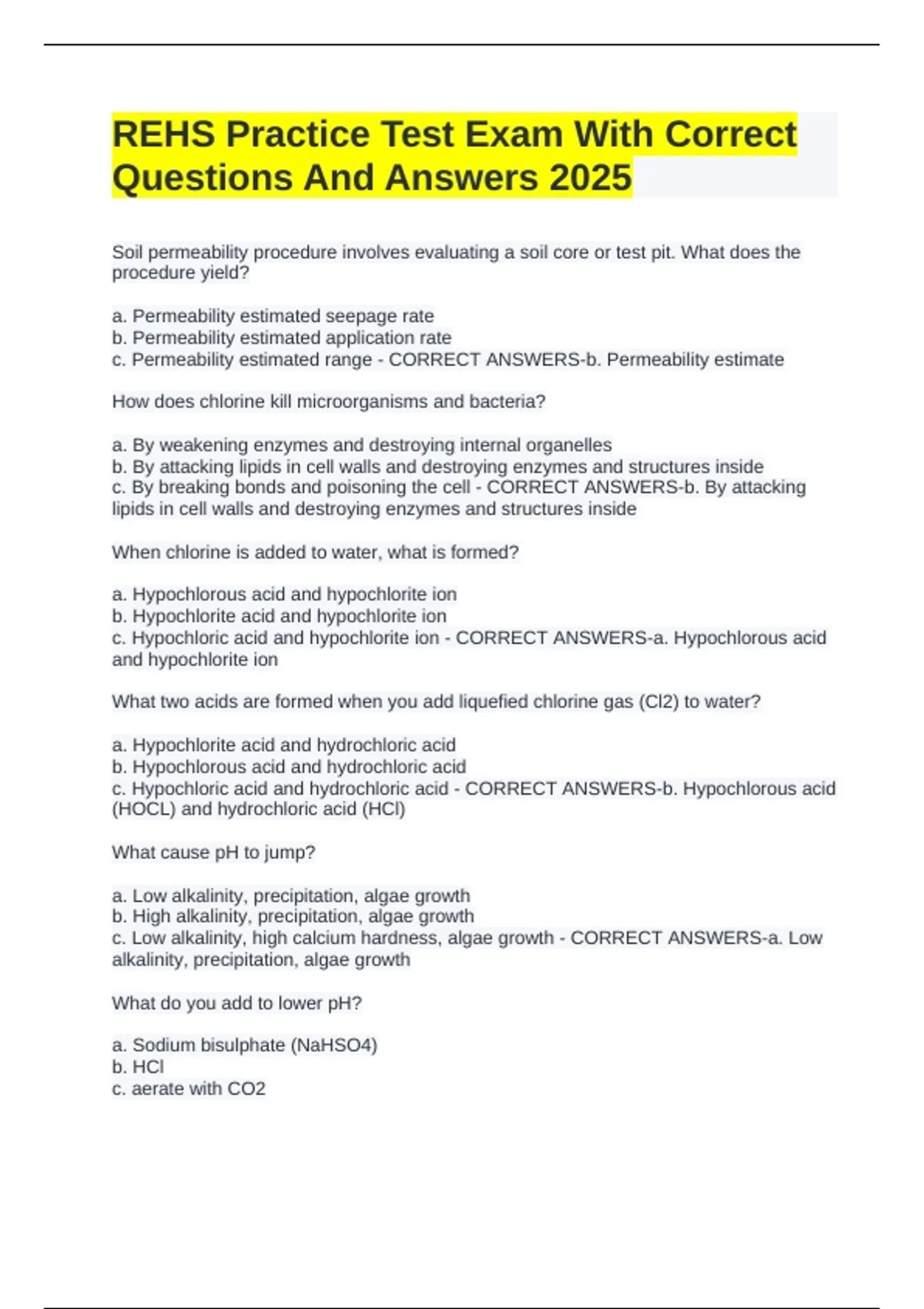 REHS Practice Test Exam With Correct Questions And Answers 2025/REHS Practice Test Exam With Correct Questions And Answers 2025