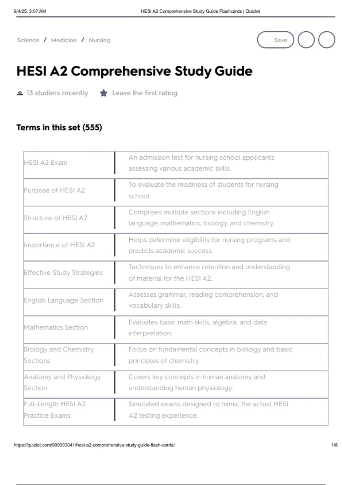 , 9/4/25, 3:07 AM HESI A2 Comprehensive Study Guide Flashcards | Quizlet