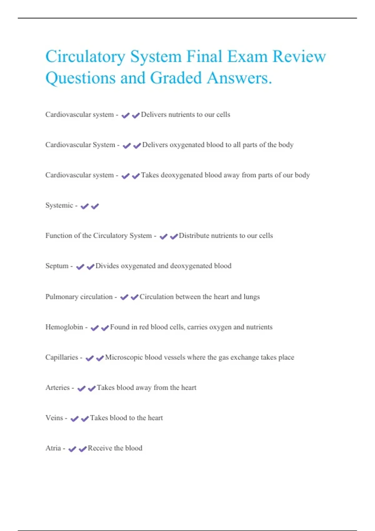 Cardiovascular system - Takes deoxygenated blood away from parts of our body