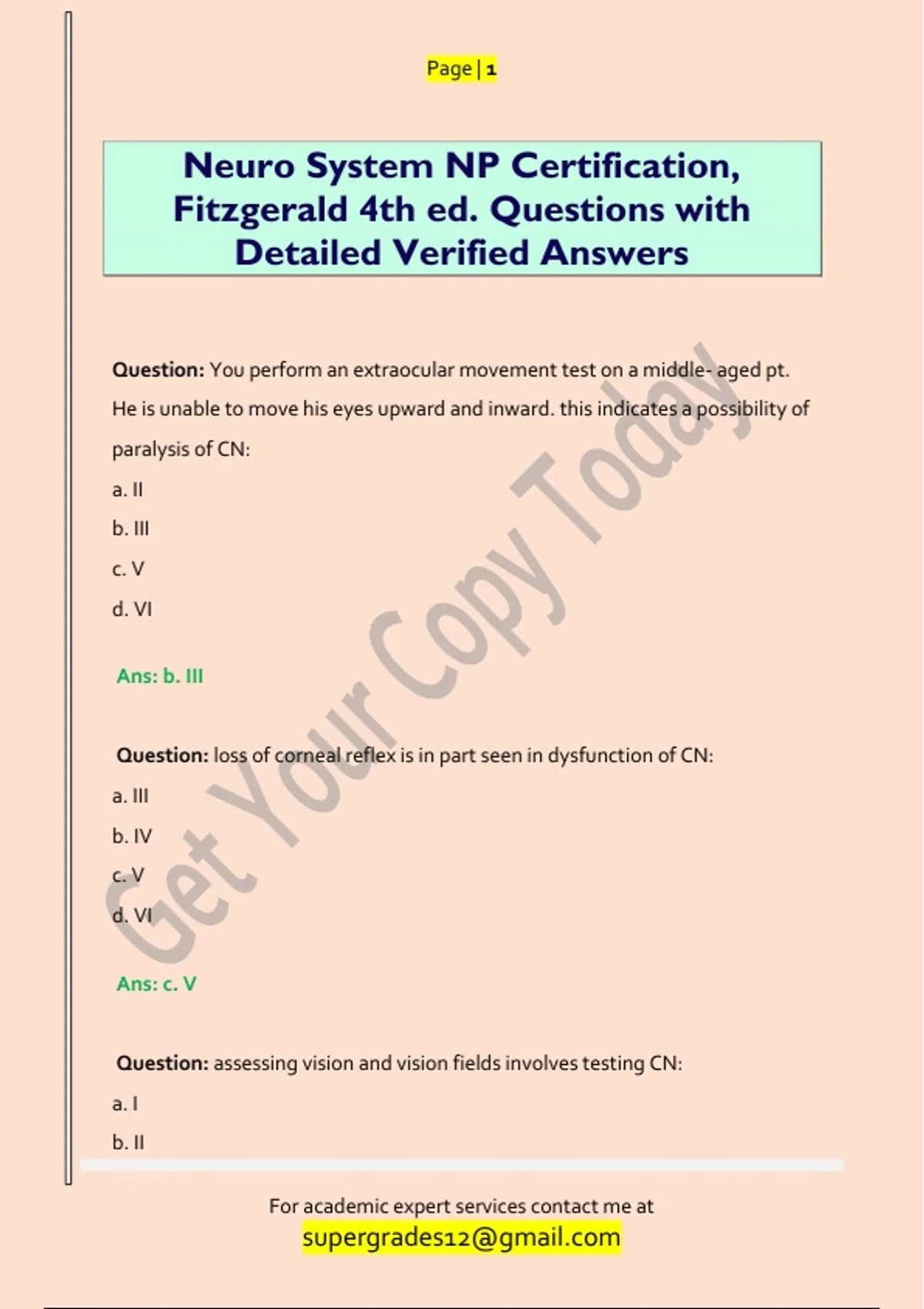 Neuro System NP Certification, Fitzgerald 4th ed. Questions with Detailed Verified Answers