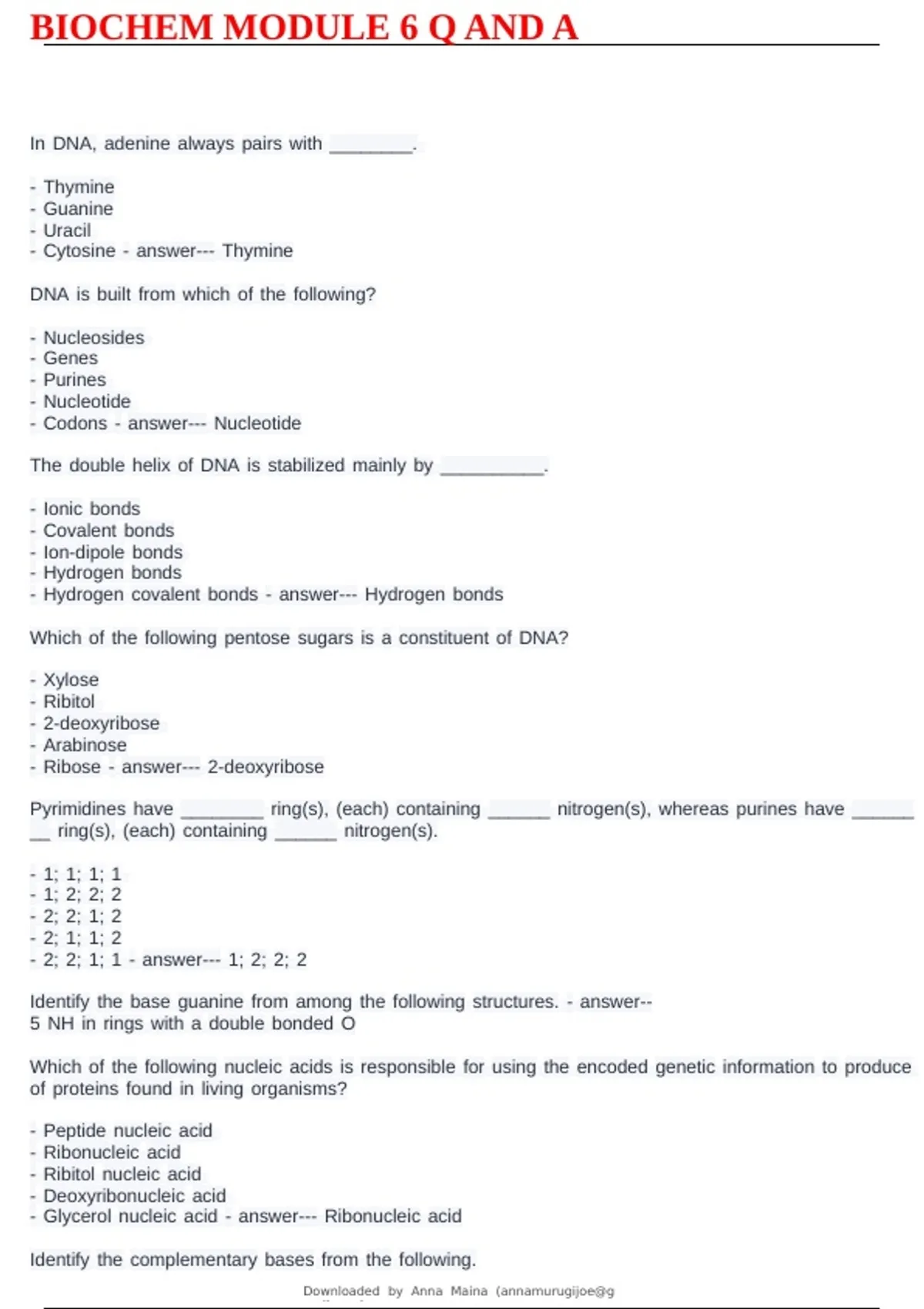 BIOCHEM MODULE 6 Q AND A