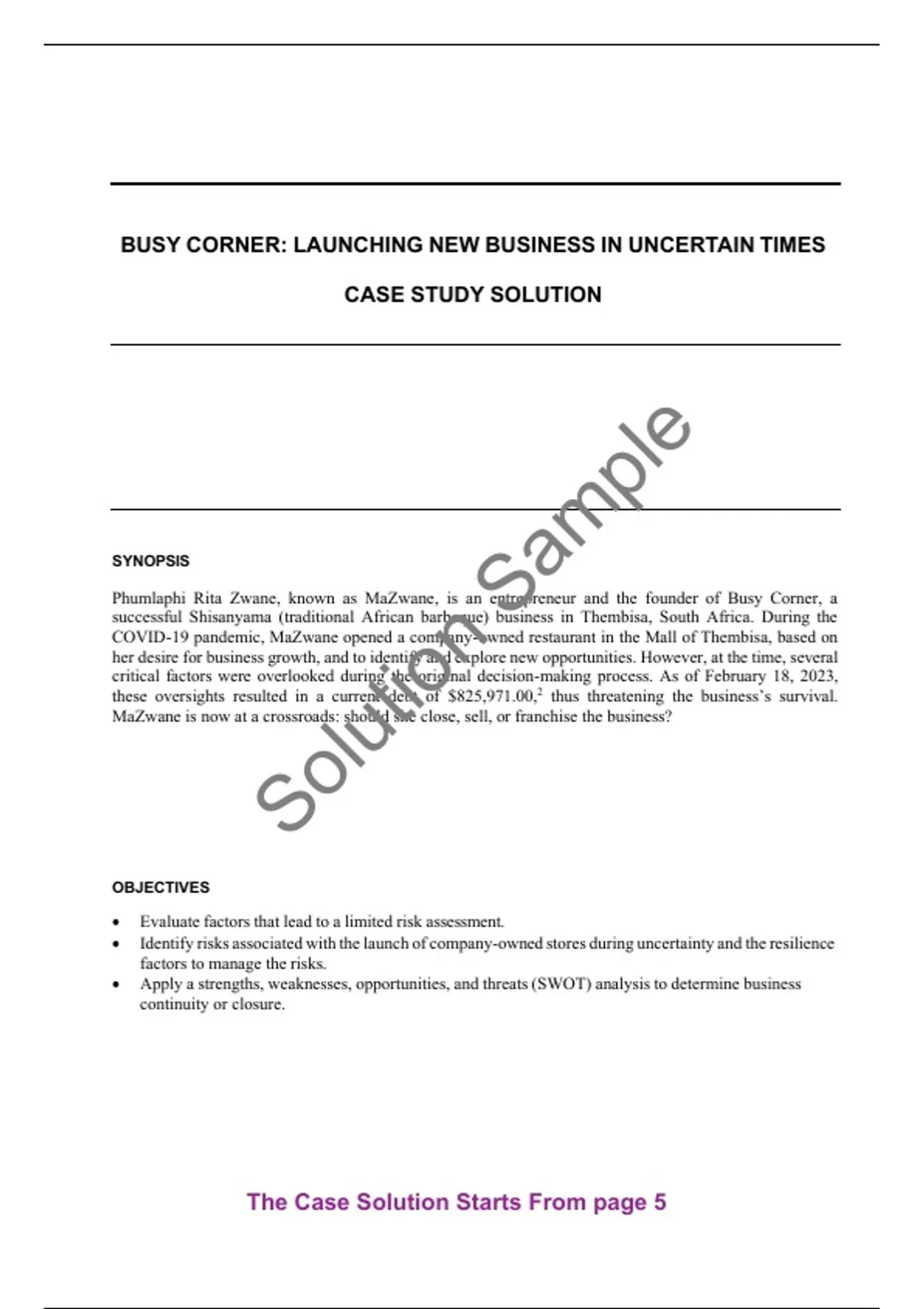 Get the Busy Corner Launching New Business in Uncertain Times Case Study Solution and Analysis by Steven Zwane, Anastacia Mamabolo | Case ID: W34611. We guarantee that this case solution is 100% original, official, and not AI-generated. It is a plagiarism-free, complete, and well-structured solution, perfect for exam preparation, assignments, and research.