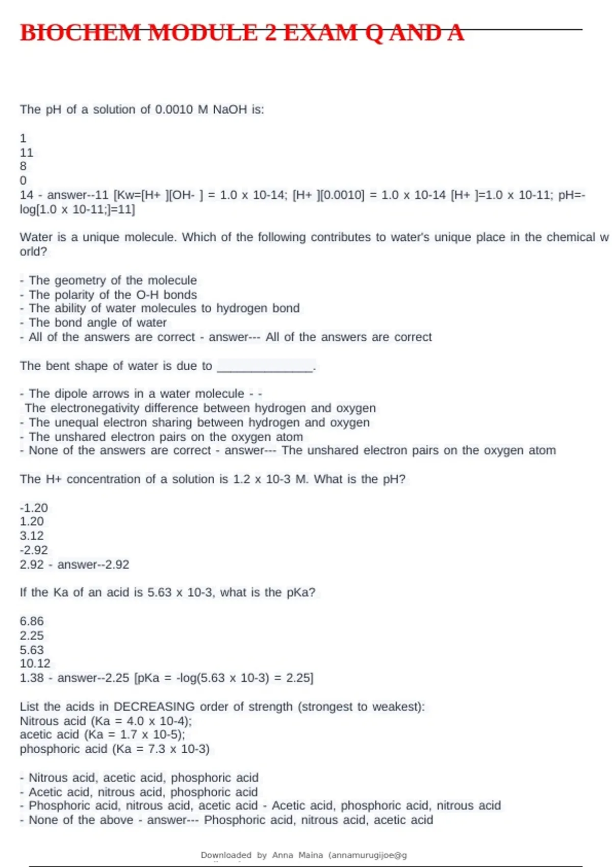 BIOCHEM MODULE 2 EXAM Q AND A