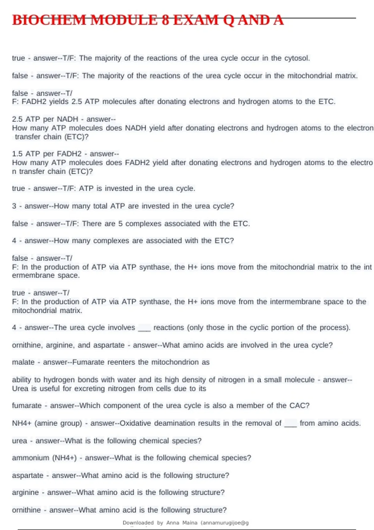 BIOCHEM MODULE 8 EXAM Q AND A