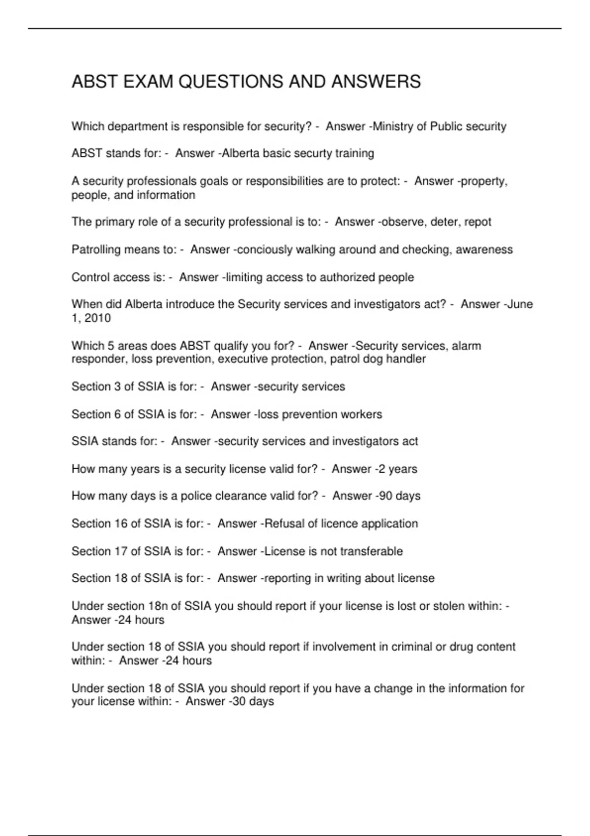 Which 5 areas does ABST qualify you for? - Answer -Security services, alarm