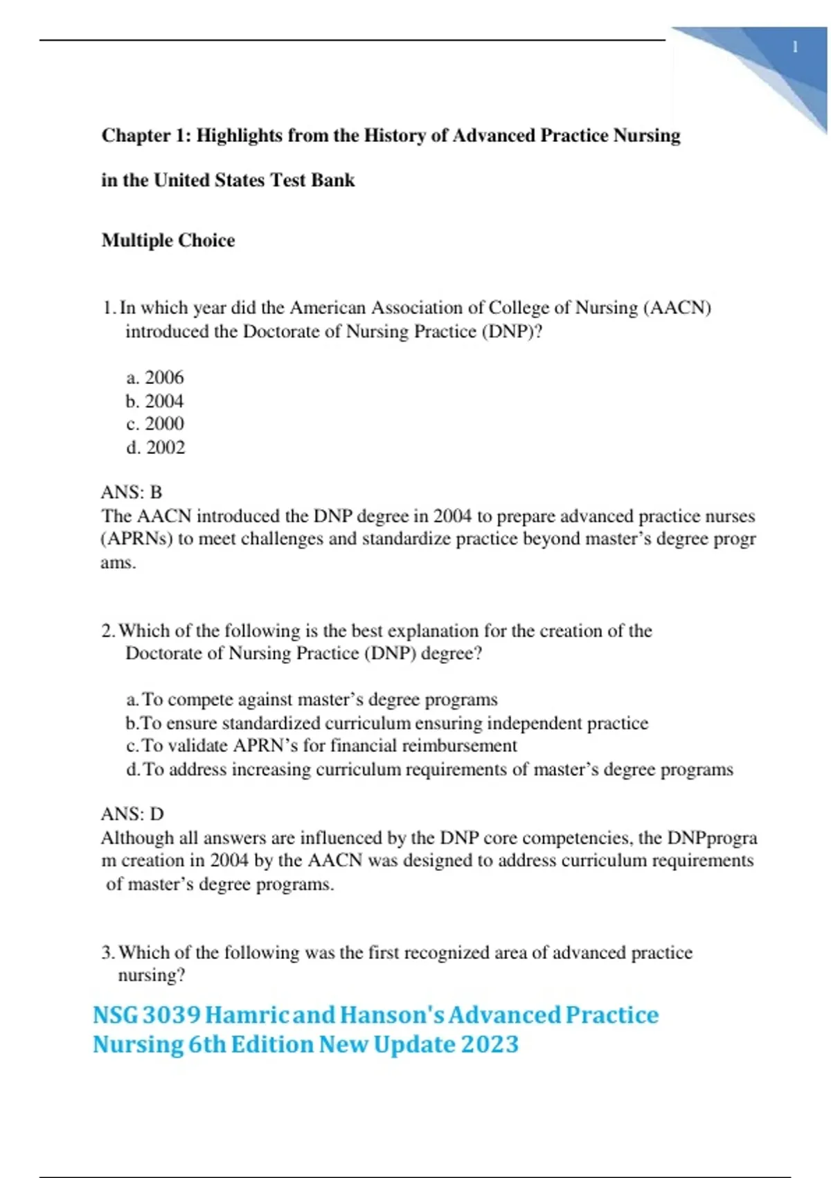 The AACN introduced the DNP degree in 2004 to prepare advanced practice nurses