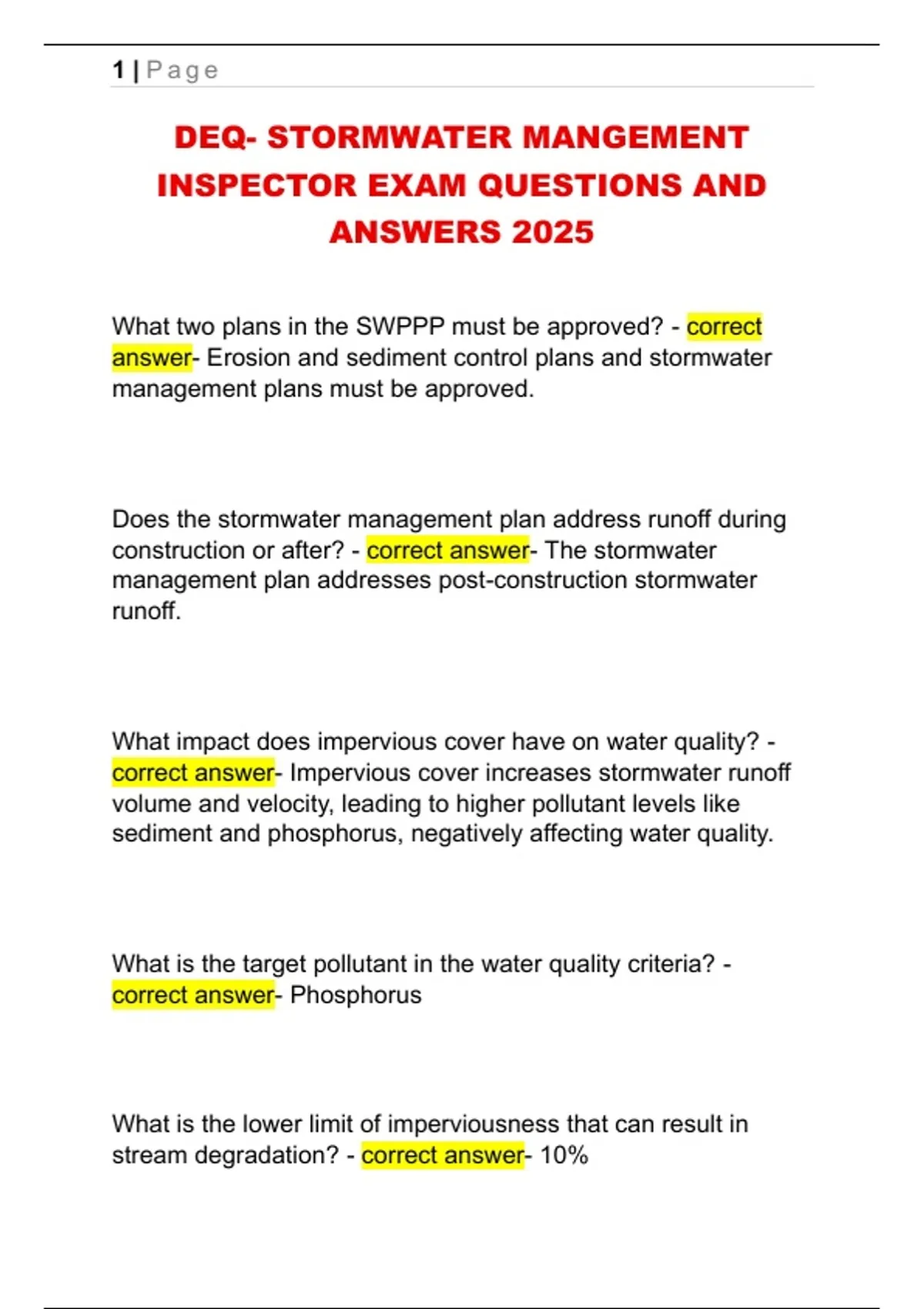 construction or after? - correct answer- The stormwater