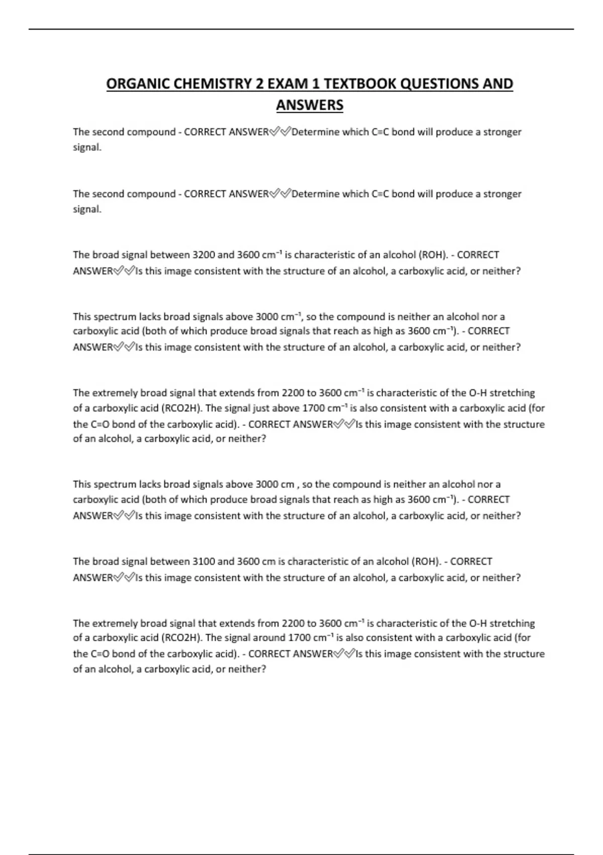 ORGANIC CHEMISTRY 2 EXAM 1 TEXTBOOK QUESTIONS AND