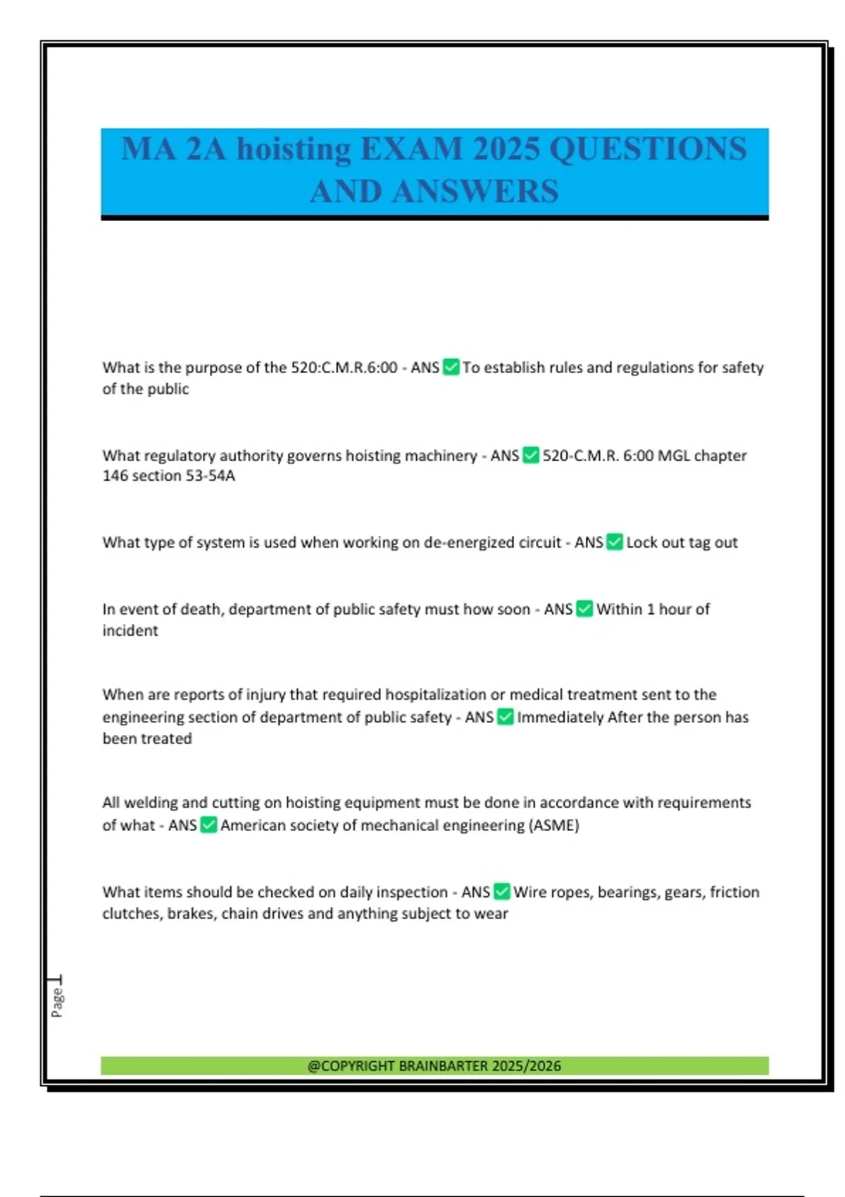 MA 2A hoisting EXAM 2025 QUESTIONS AND ANSWERS