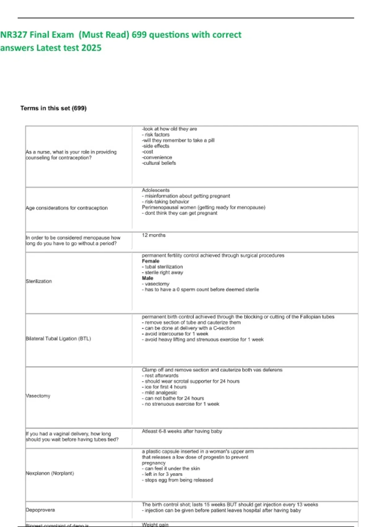 ,NR327 Final Exam (Must Read) 699 questions with correct
