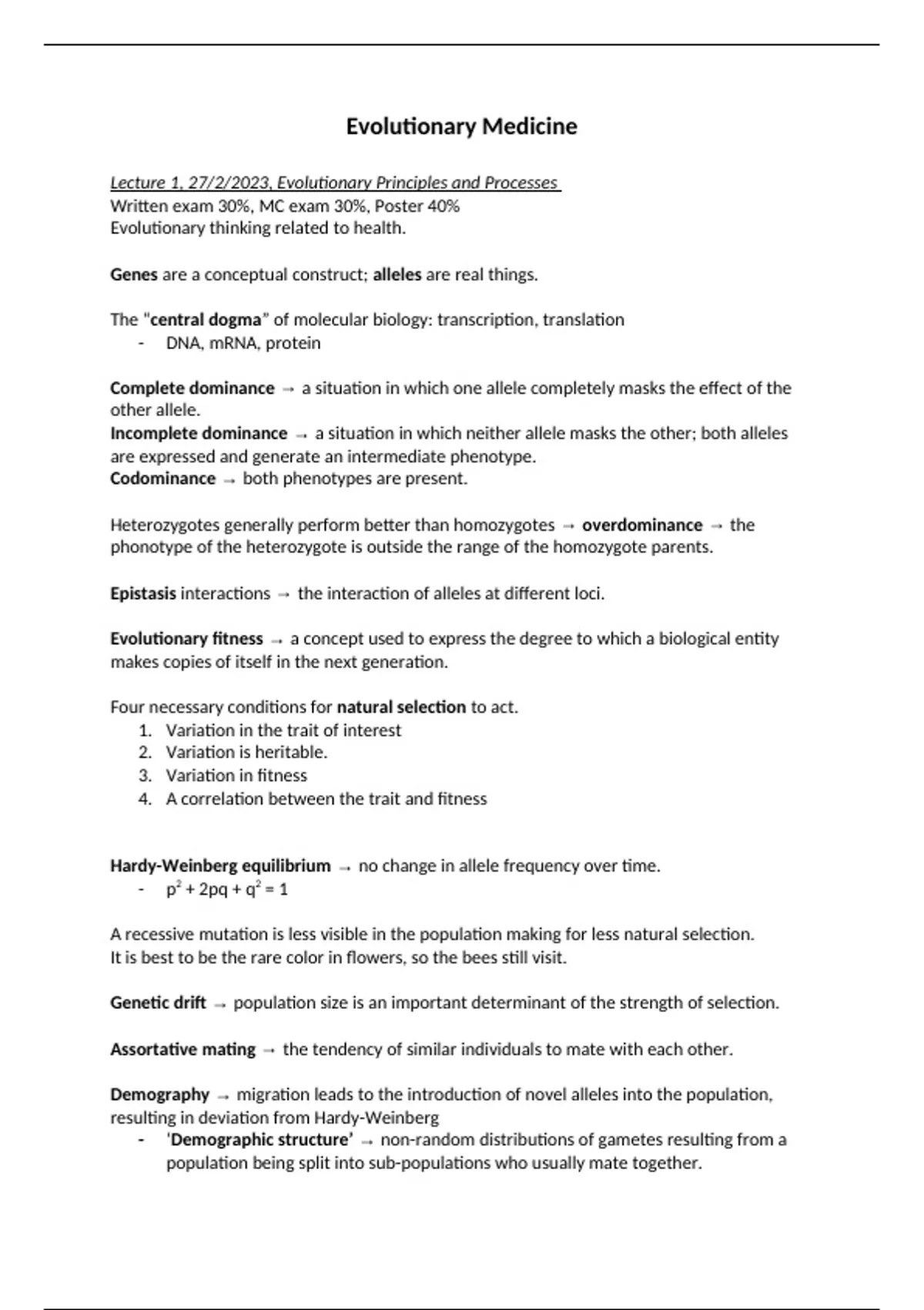 Lecture 1, 27/2/2023, Evolutionary Principles and Processes