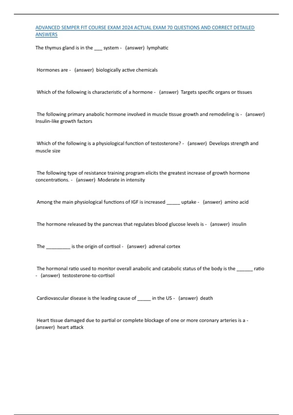 , ADVANCED SEMPER FIT COURSE EXAM 2024 ACTUAL EXAM 70 QUESTIONS AND CORRECT DETAILED
