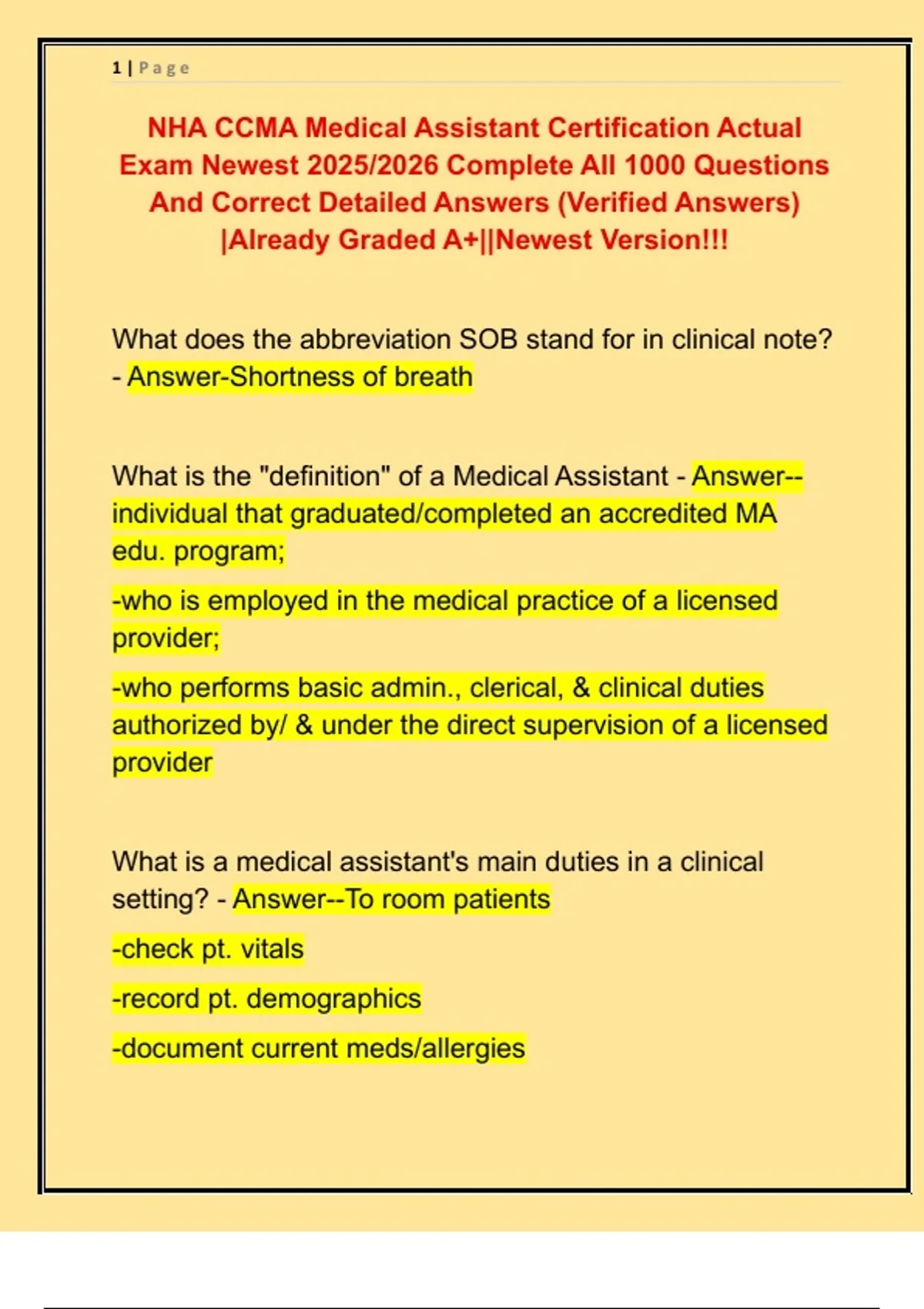 NHA CCMA Medical Assistant Certification Actual