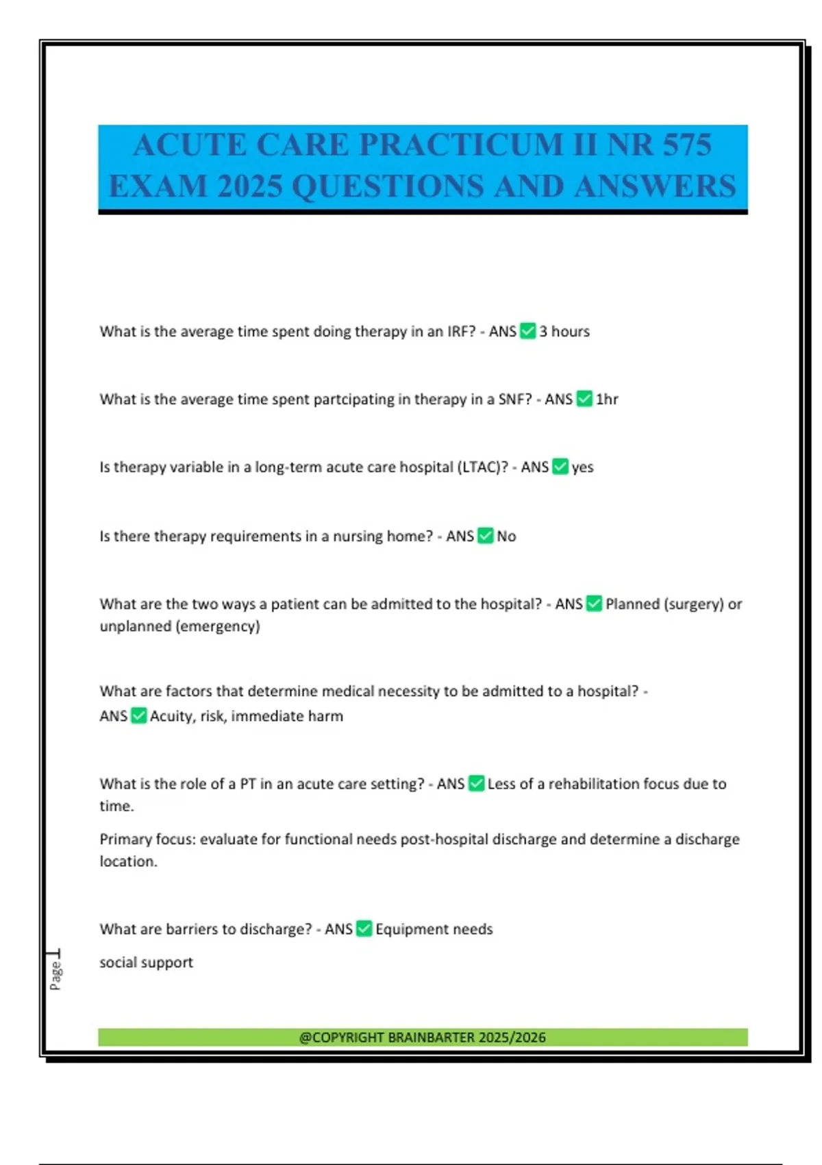 ACUTE CARE PRACTICUM II NR 575 EXAM 2025 QUESTIONS AND ANSWERS