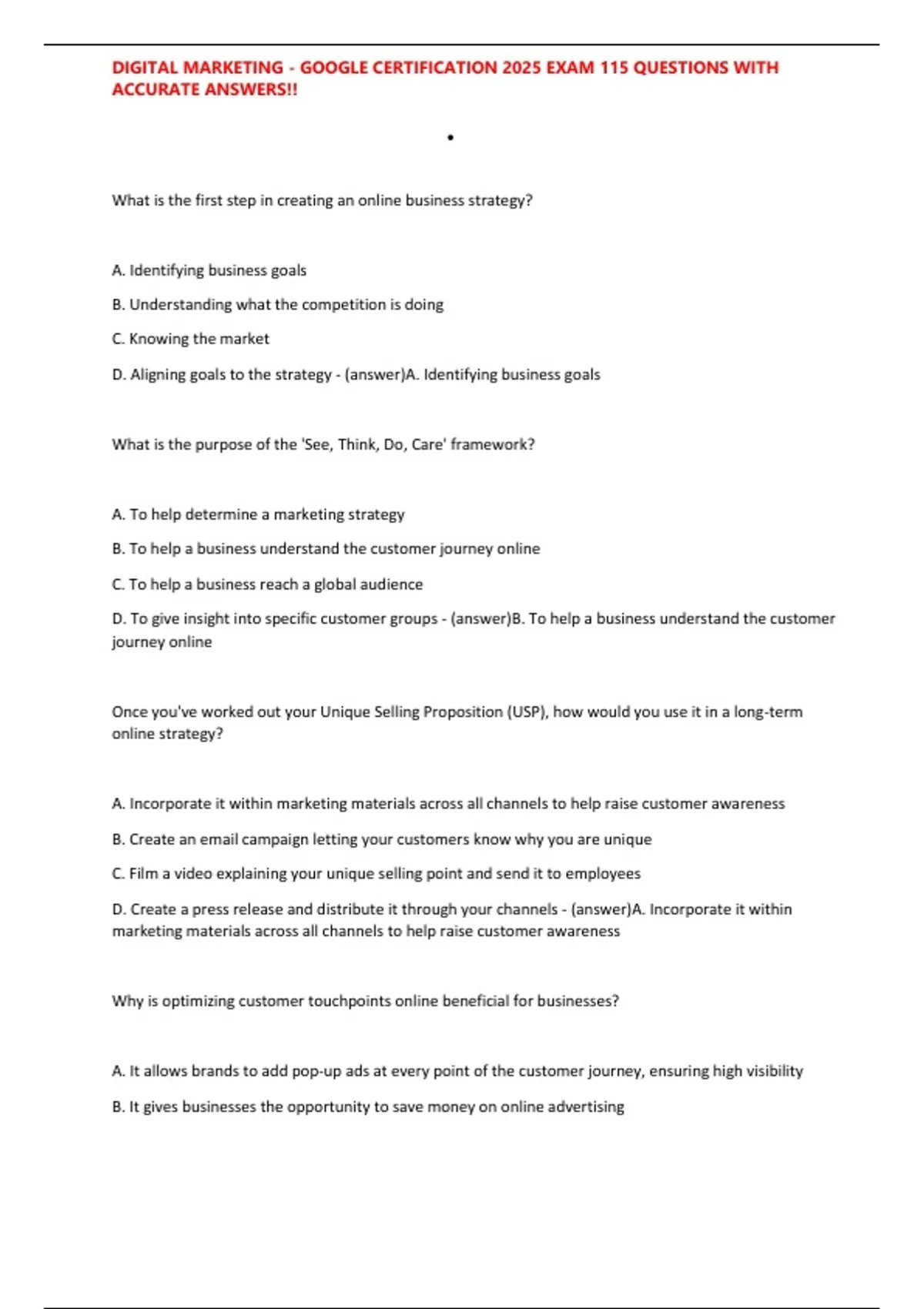 , DIGITAL MARKETING - GOOGLE CERTIFICATION 2025 EXAM 115 QUESTIONS WITH
