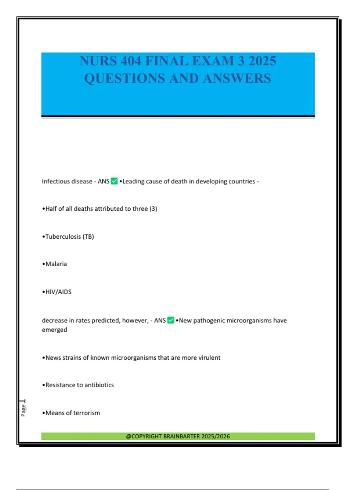 Infectious disease - ANS •Leading cause of death in developing countries -