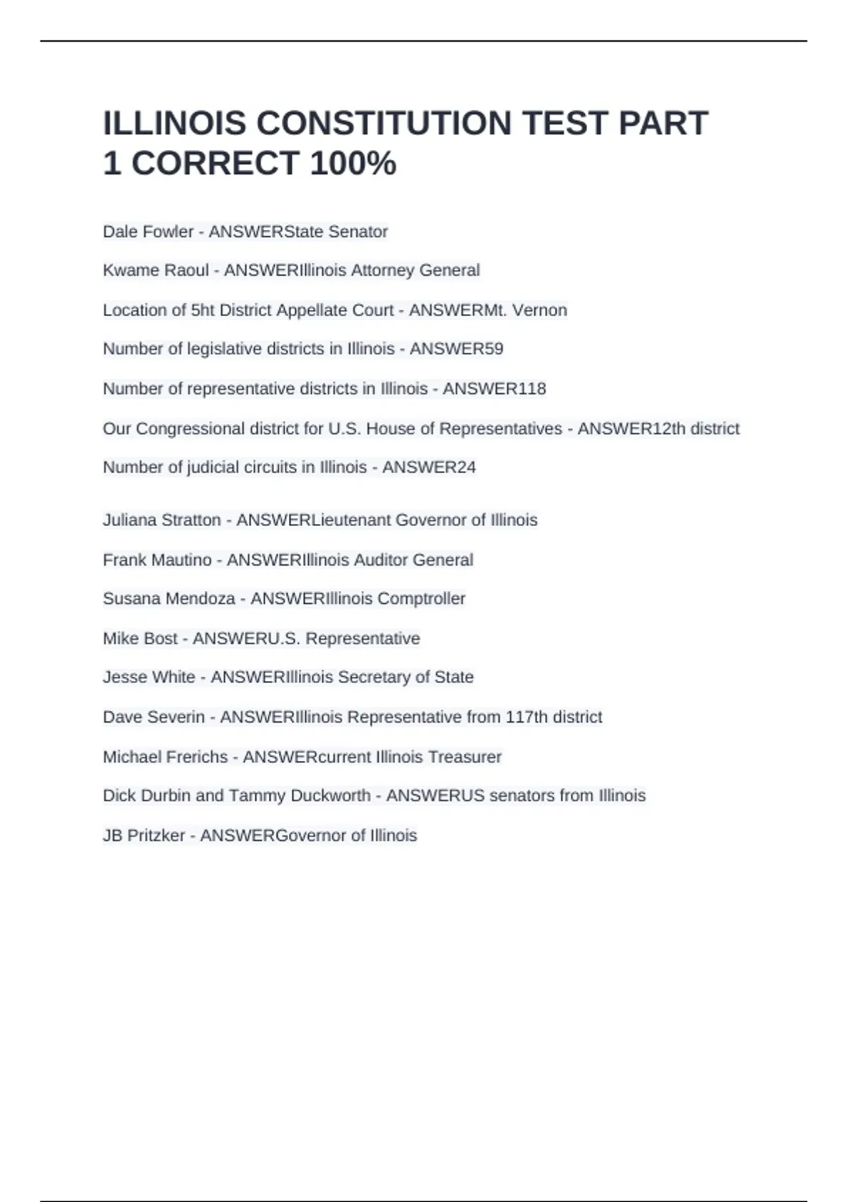 ILLINOIS CONSTITUTION TEST PART 1 CORRECT 100%
