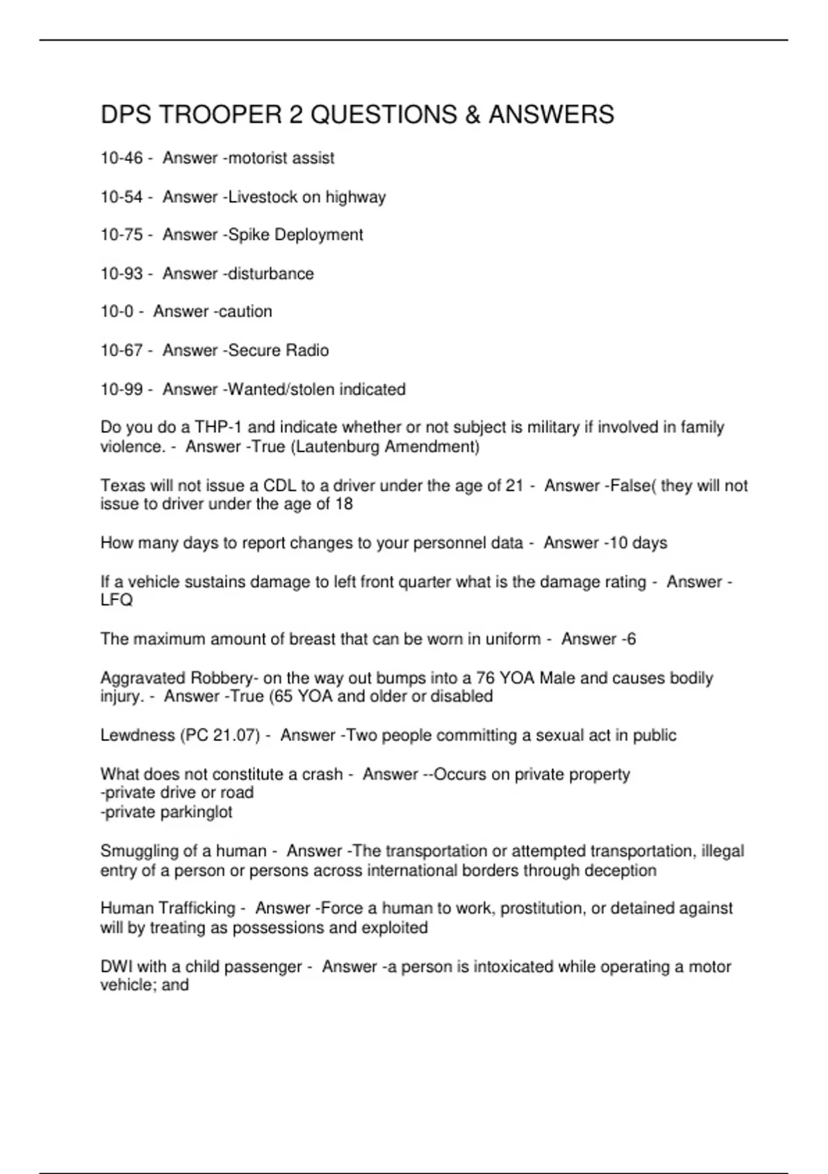 DPS TROOPER 2 QUESTIONS & ANSWERS