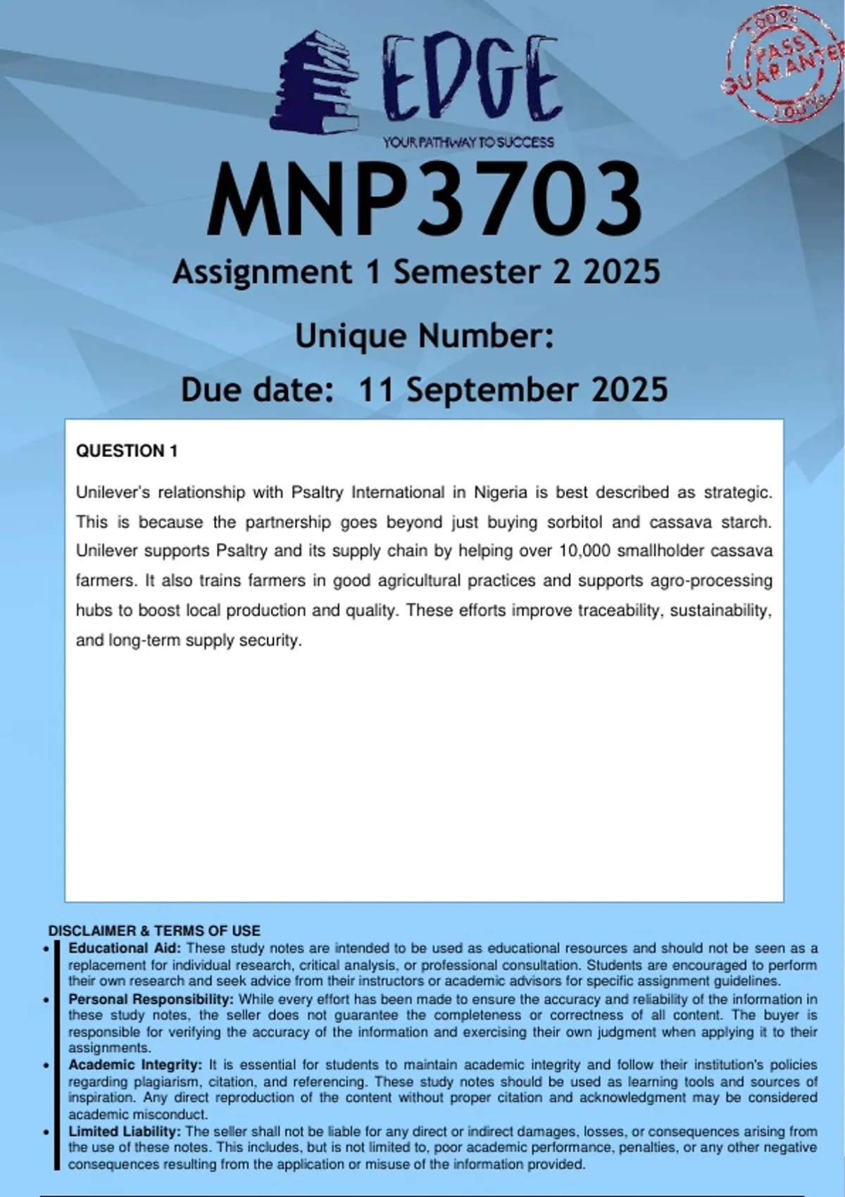 these study notes, the seller does not guarantee the completeness or correctness of all content. The buyer is