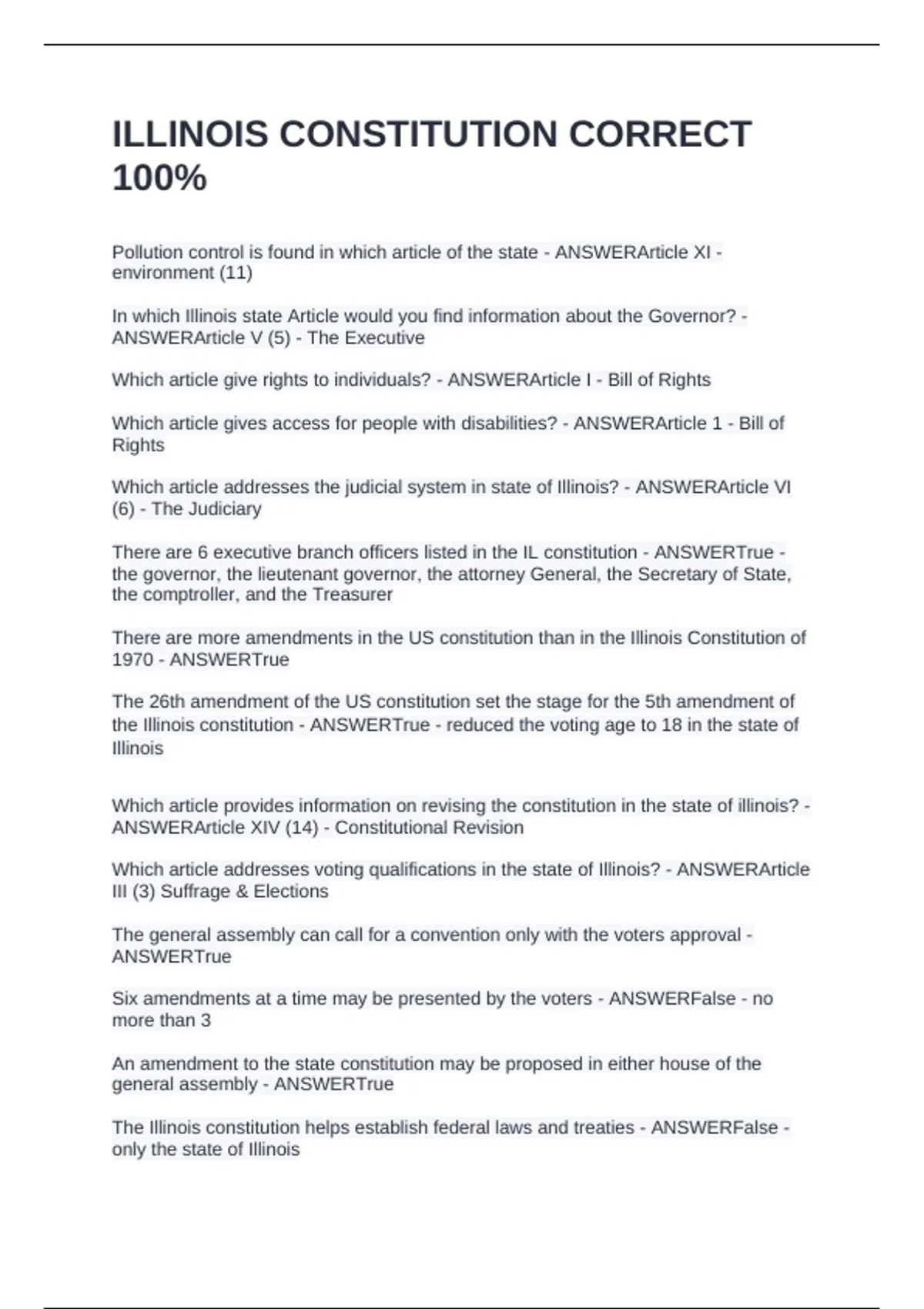 ILLINOIS CONSTITUTION CORRECT 100%